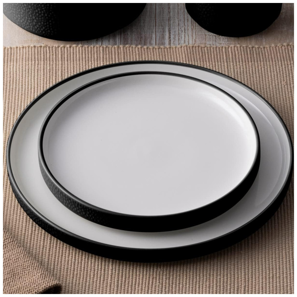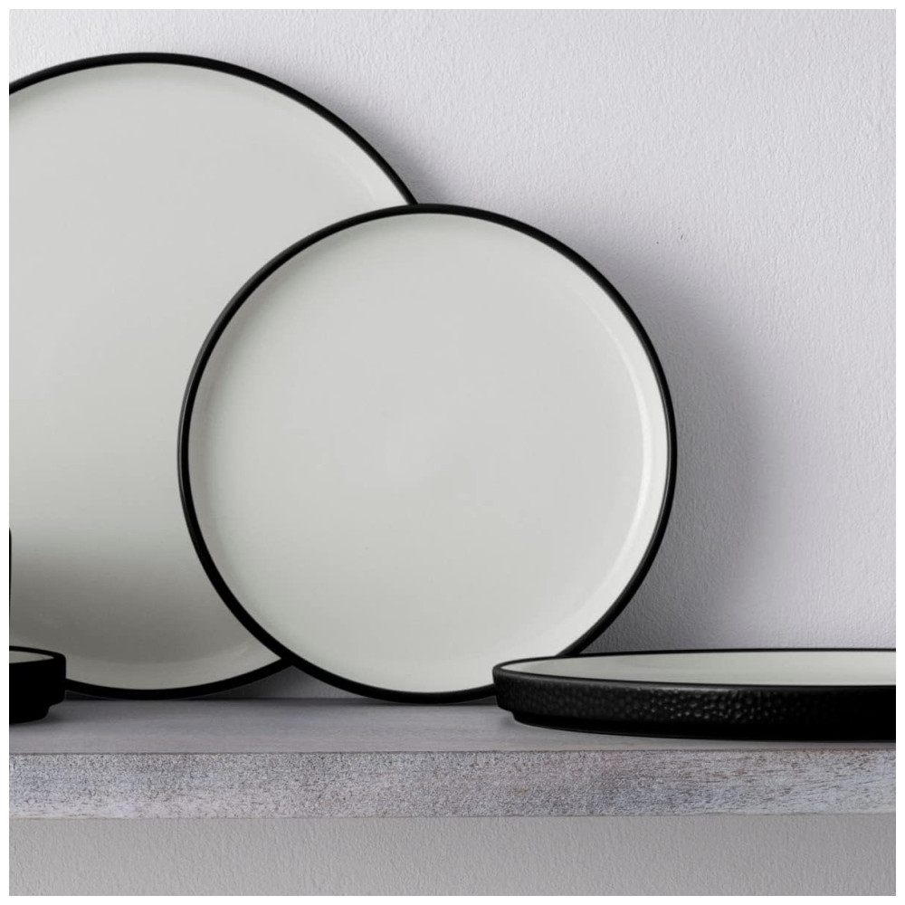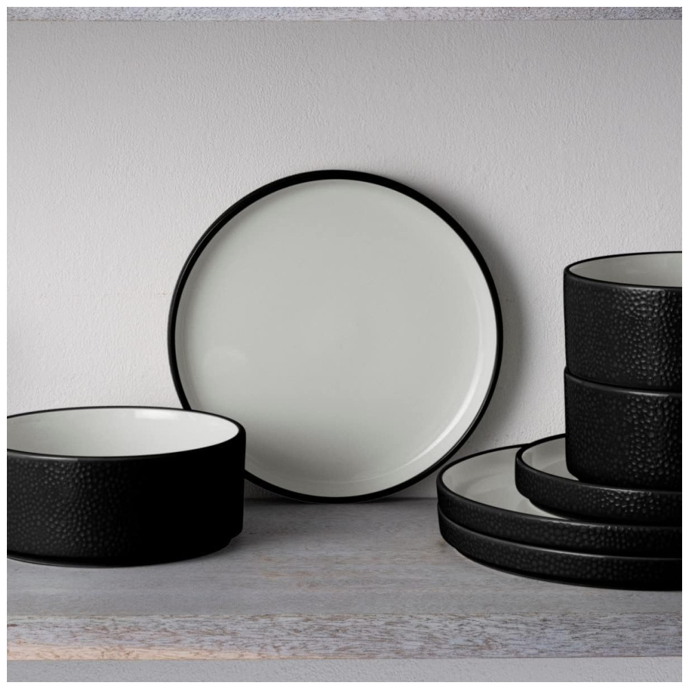 Conjunto de Pratos para Salada e Sobremesa com 4 Peças Formato Redondo Material de Porcelana e Designer Minimalista Noritake G007-205D Preto