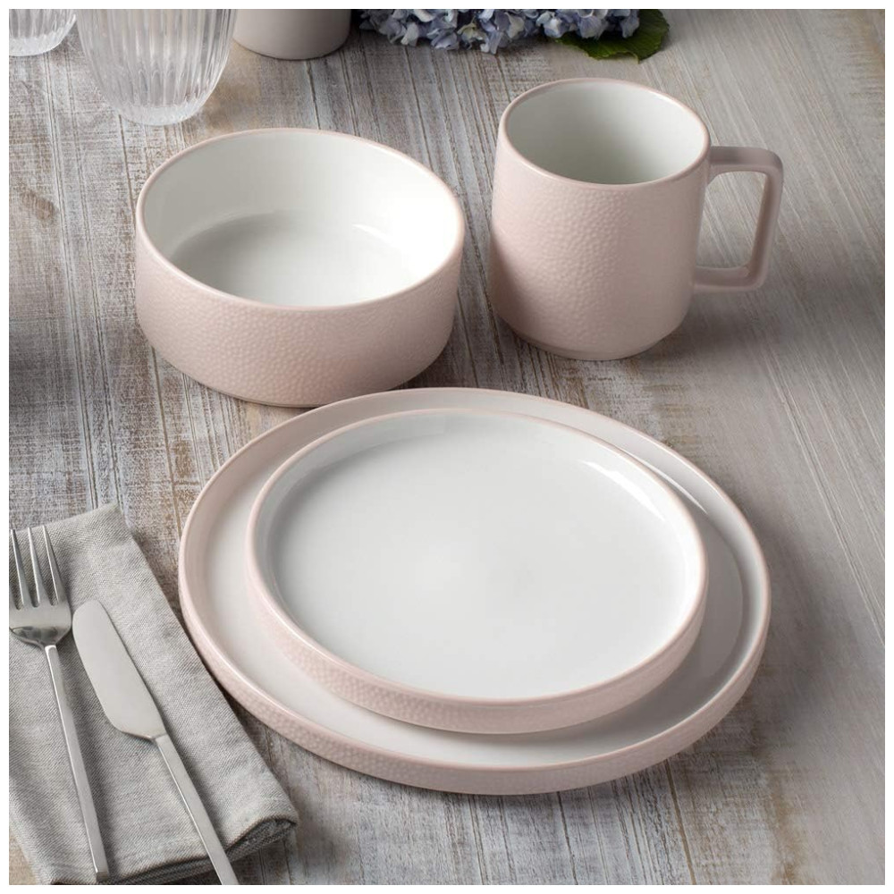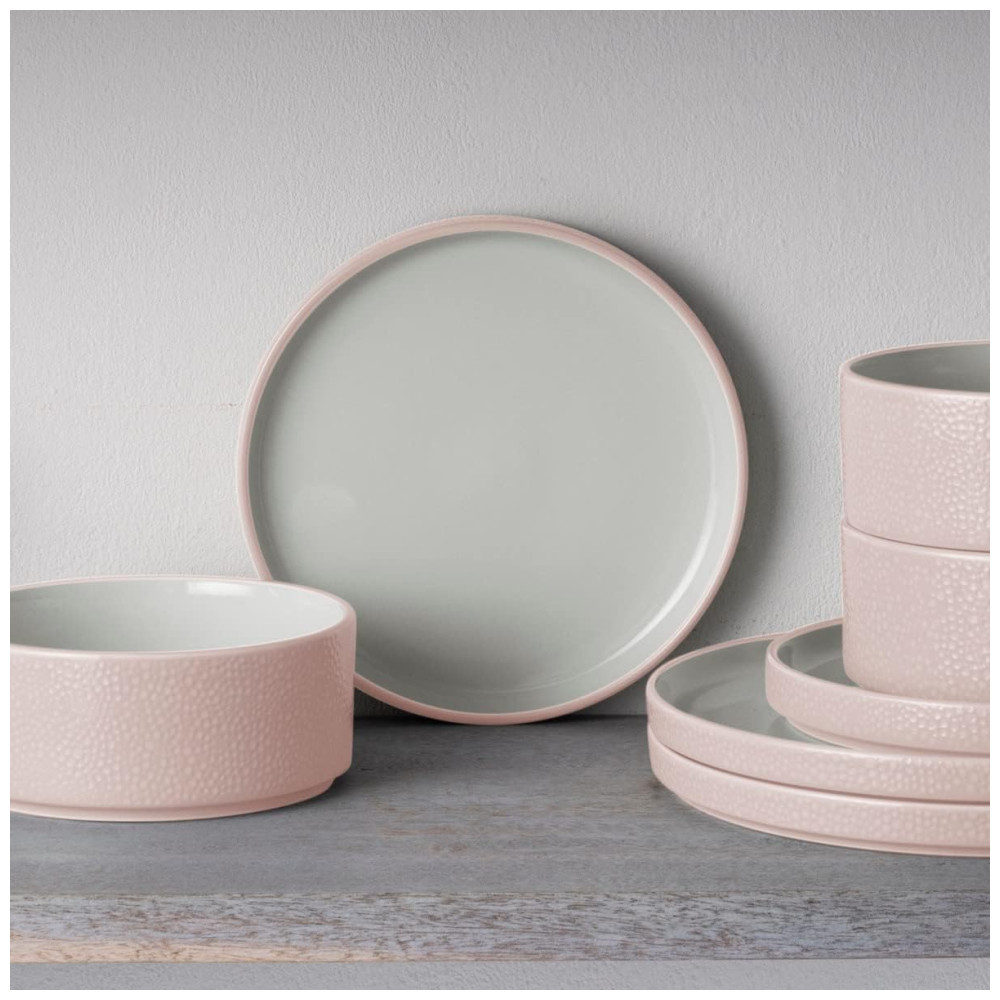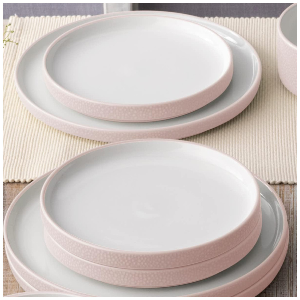 Conjunto de Pratos para Salada e Sobremesa com 4 Peças Formato Redondo Material de Porcelana e Designer Minimalista Noritake G014-205D Rosa