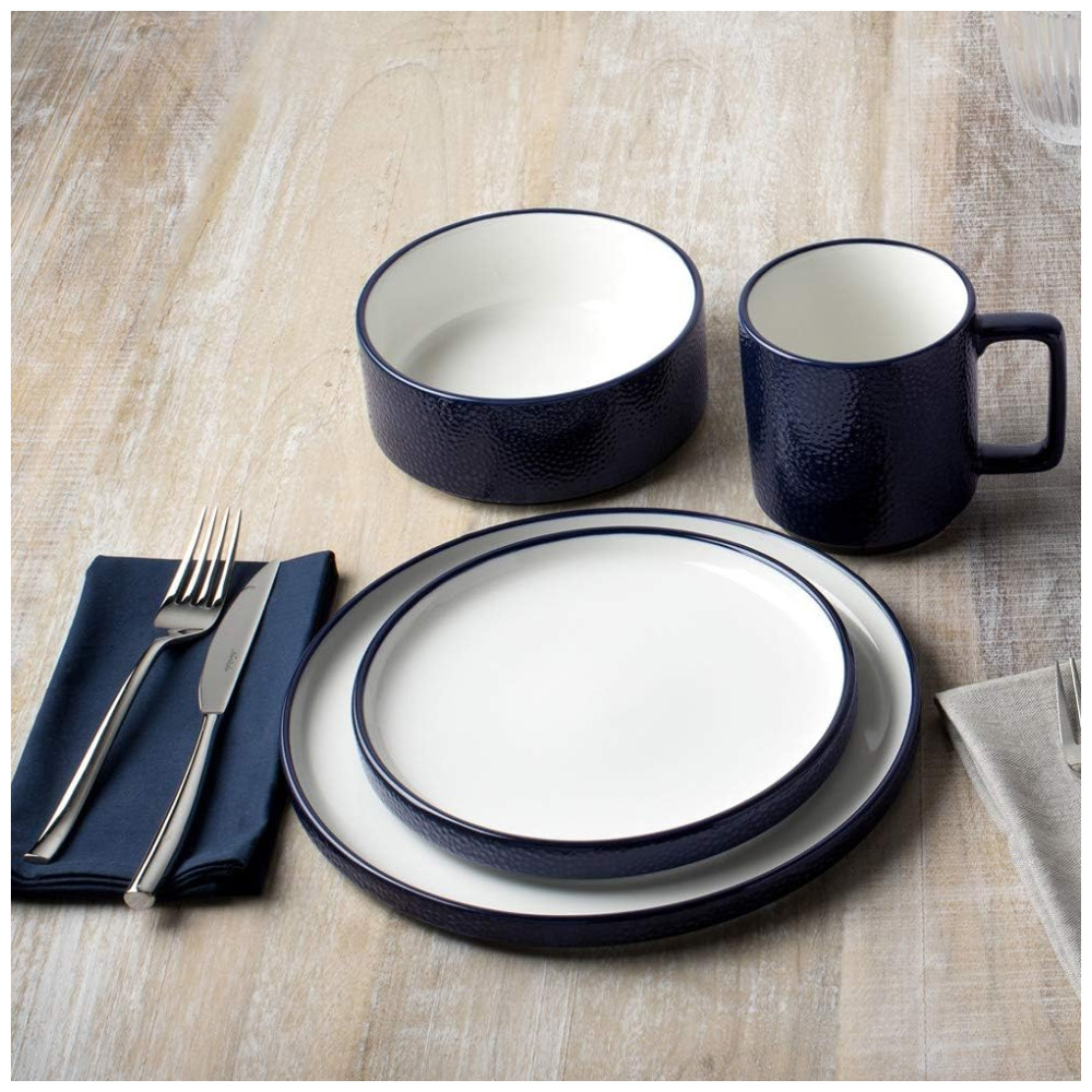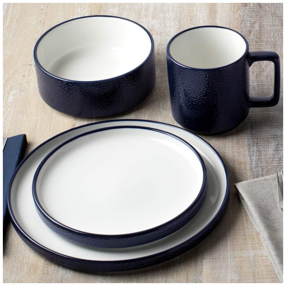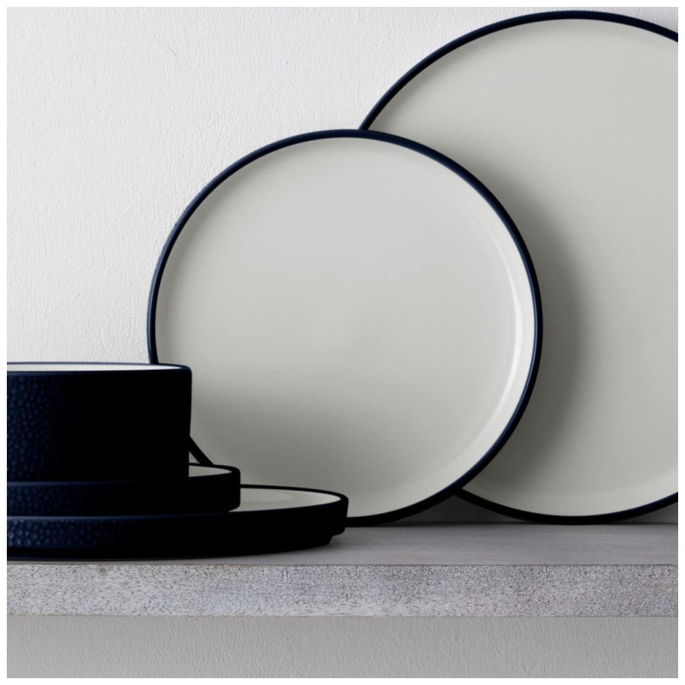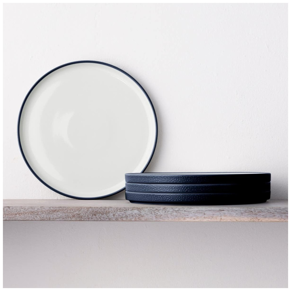 Conjunto de Pratos para Salada e Sobremesa com 4 Peças Formato Redondo Material de Porcelana e Designer Minimalista Noritake G015-205D Azul