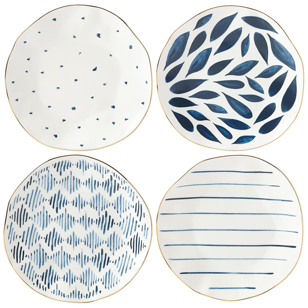 Conjunto de Pratos para Sobremesa com 4 Peças Formato Ondulado Redondo e Material de Porcelana LENOX 890197 Colorido