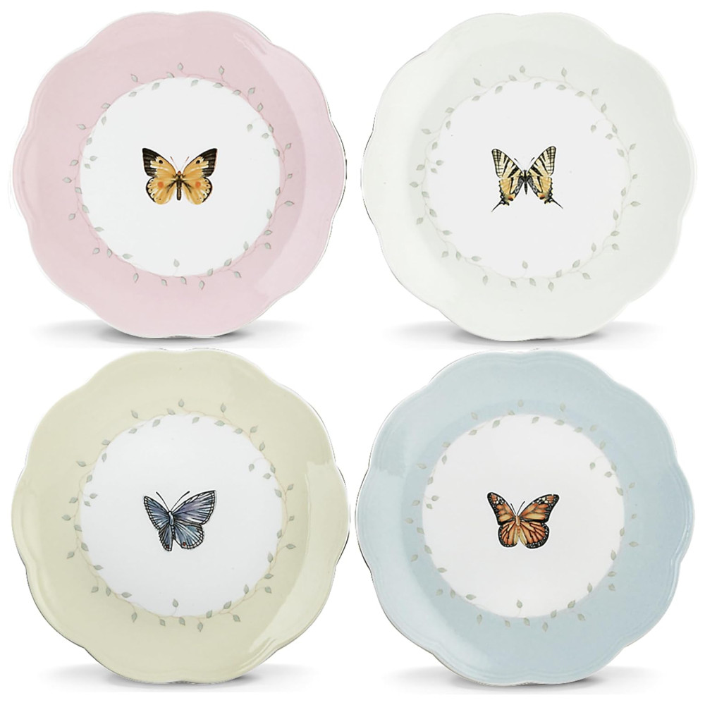 Conjunto de Pratos para Sobremesa com 4 Peças Formato Ondulado Redondo Tema Borboleta e Material de Porcelana LENOX 6444731 Colorido
