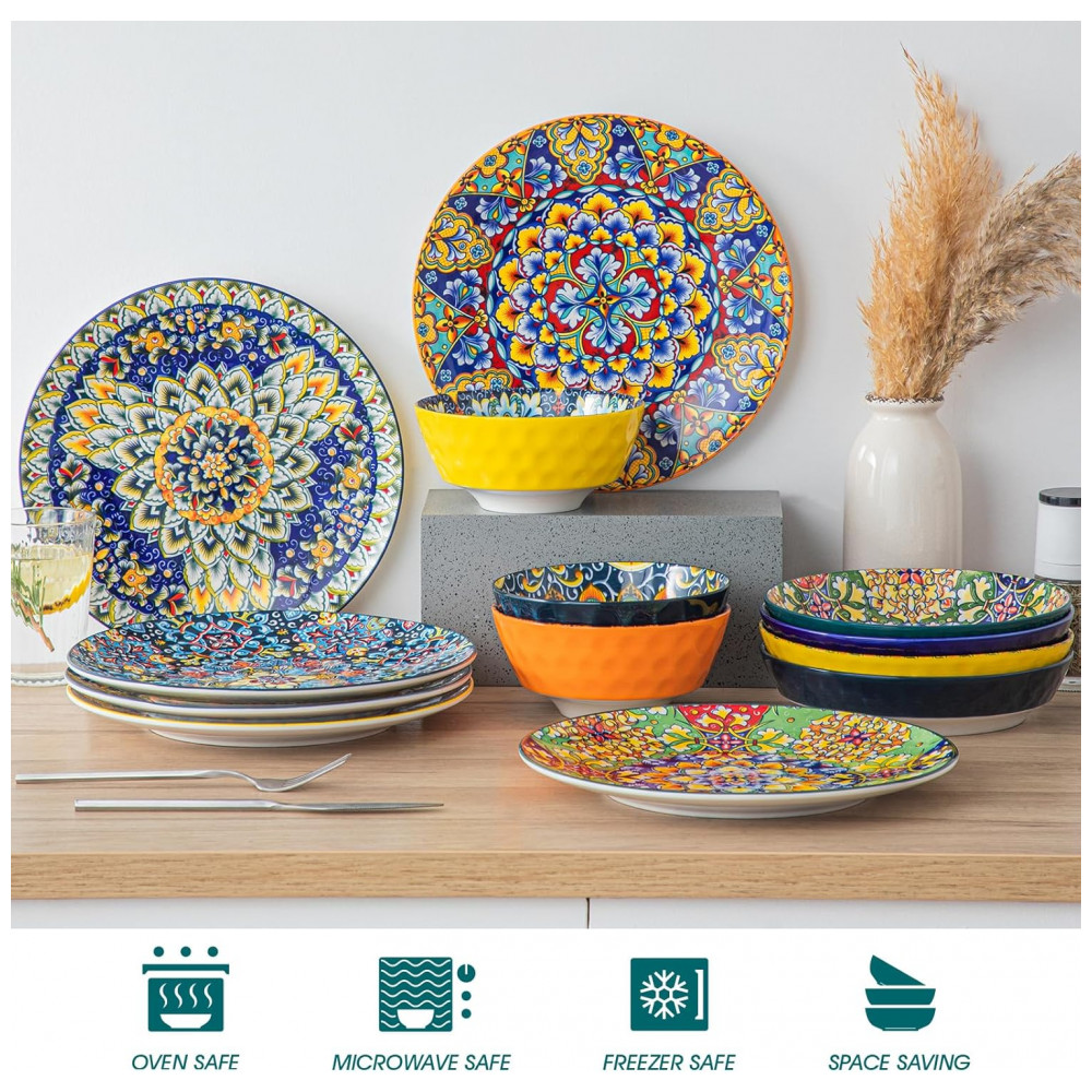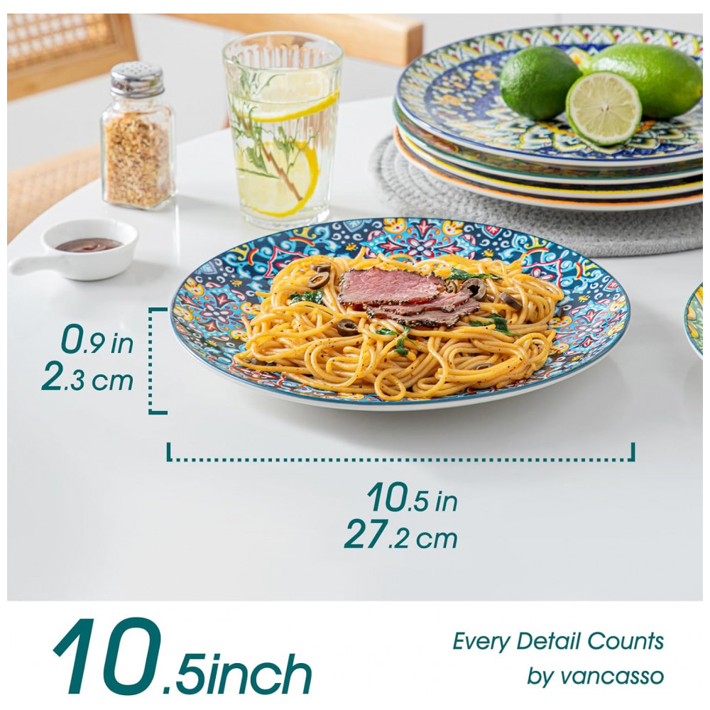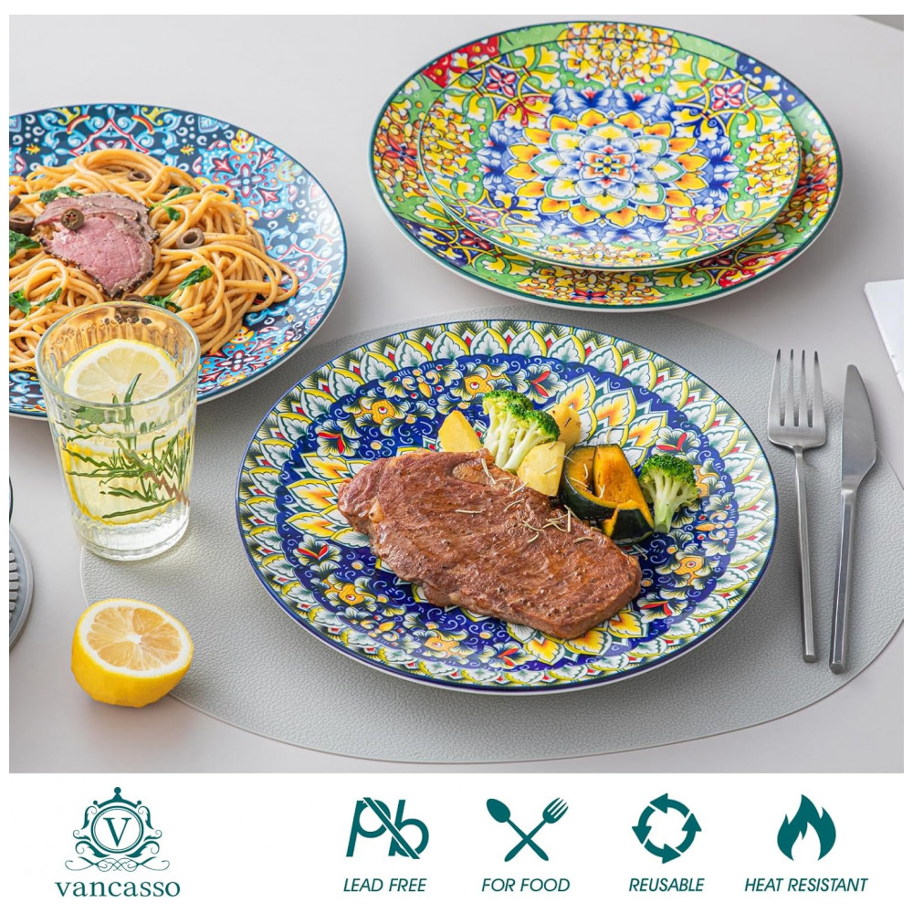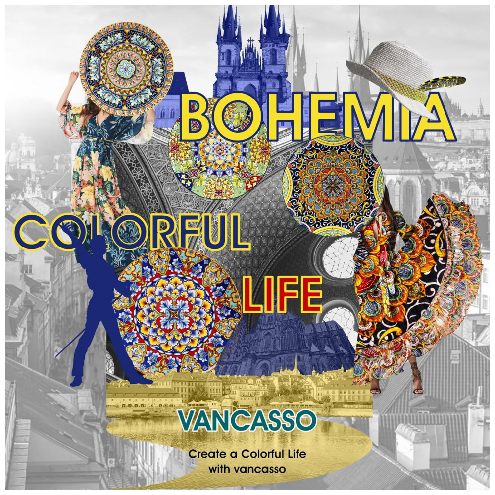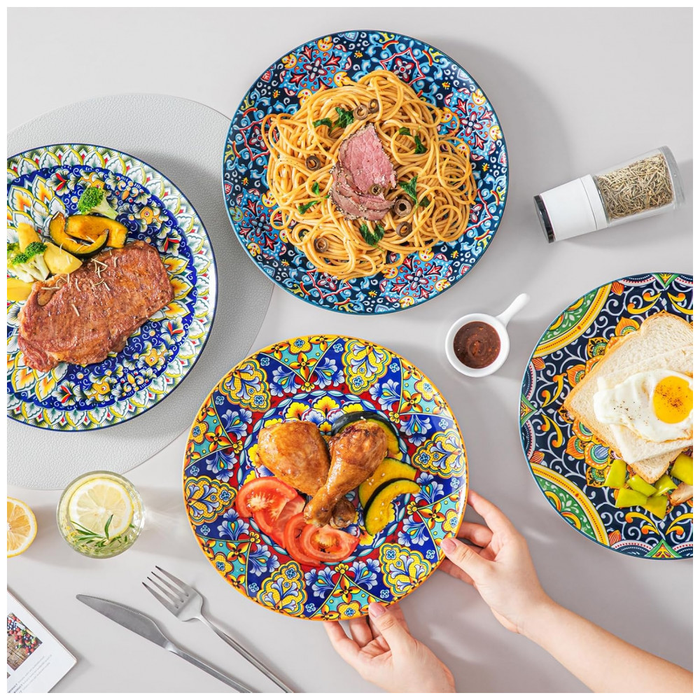 Designs vibrantes e coloridos: Os pratos de estilo boêmio de Vancasso apresentam designs encantadores e intrincados que capturam a essência de espírito livre da cultura boêmia. As cores vivas e os padrões artísticos evocam uma sensação de alegria e positividade, aprimorando sua experiência gastronômica com uma explosão de energia e felicidade.