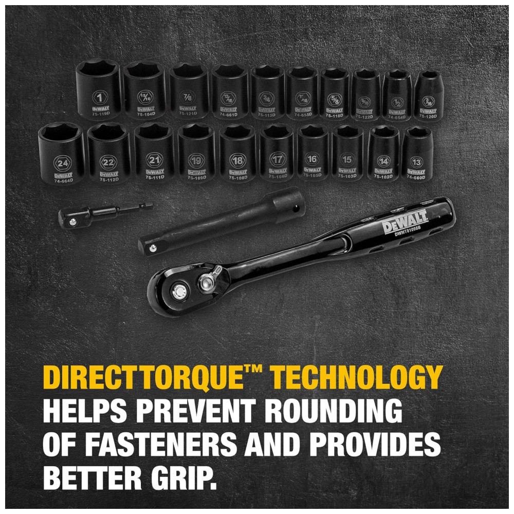 A tecnologia DirectTorque do conjunto de soquetes mecânicos ajuda a evitar o arredondamento dos fixadores e proporciona melhor aderência