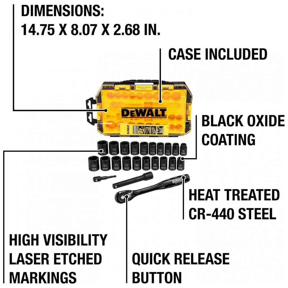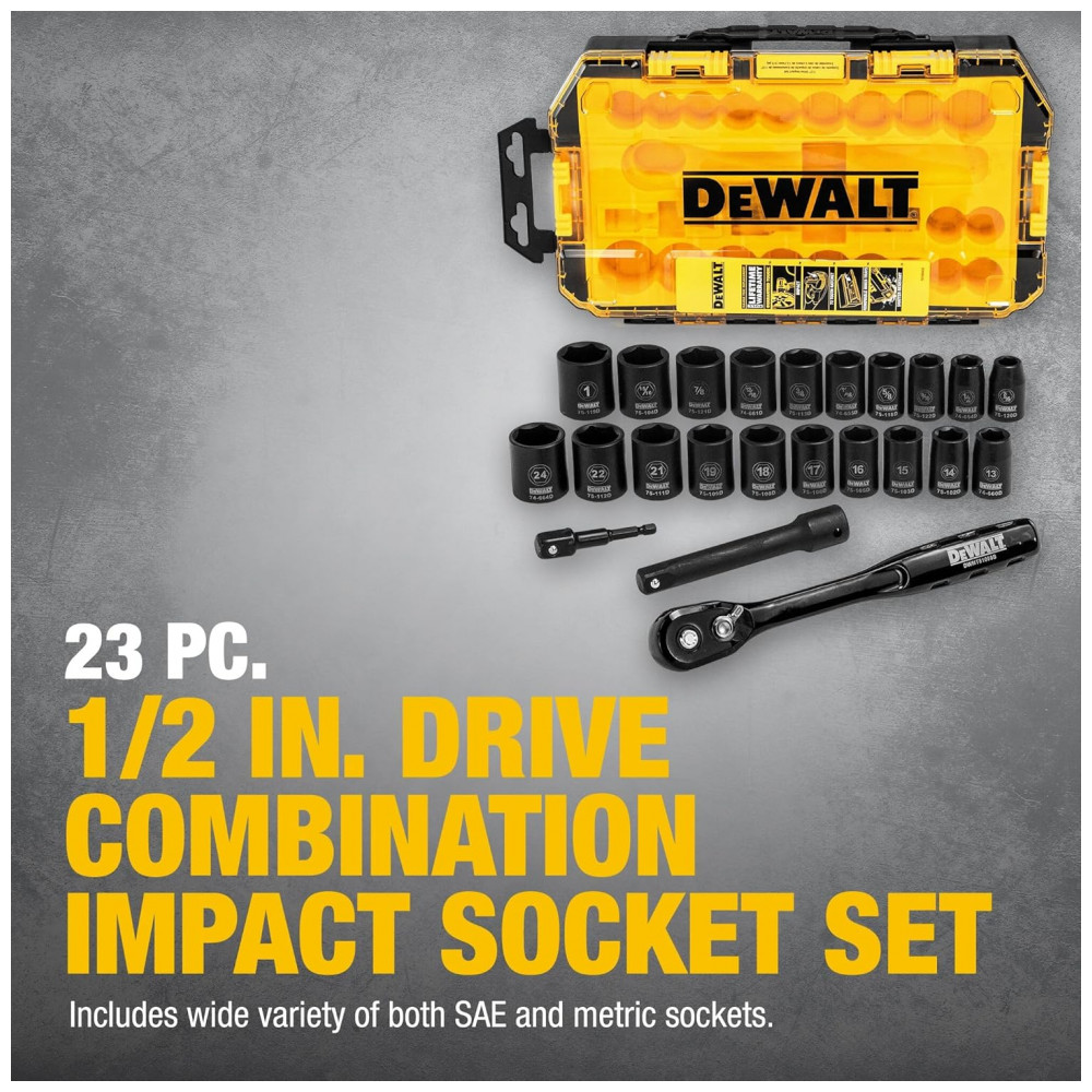 Conjunto de Soquetes de Impacto 23 Peças DEWALT DWMT74739 Amarelo