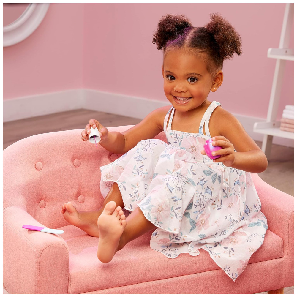 As crianças podem fingir estar no spa ou salão de beleza para tratamentos de unhas, tratamentos faciais e massagens nos pés.