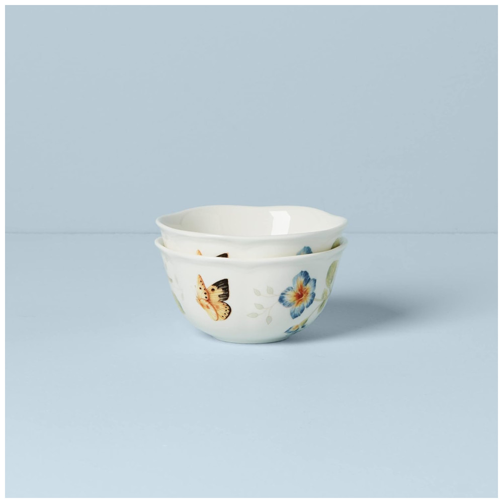 Este conjunto de tigelas de sobremesa de porcelana durável, composto por 2 peças, apresenta o design clássico Butterfly Meadow, com ilustrações encantadoras de jardim e bordas suavemente recortadas. Seu estilo delicado e vibrante torna cada tigela uma peça única, ideal para qualquer ocasião.