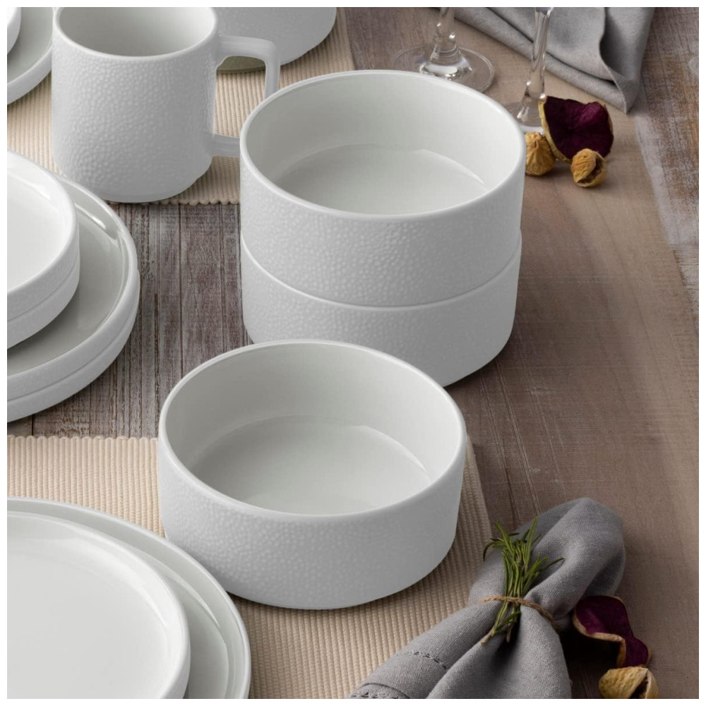 A coleção de louças ColorTex é ideal para quem aprecia um visual limpo e minimalista, trazendo sofisticação a qualquer reunião. Fabricada em porcelana branca durável, essa linha é versátil, perfeita tanto para refeições do dia a dia quanto para ocasiões especiais. Seu design funcional e elegante permite que as peças se encaixem de forma prática: o prato pequeno pode ser usado como tampa para a tigela pequena e a caneca, o prato de sobremesa serve de tampa para a tigela de cereal, o prato de salada é compatível como tampa do prato fundo, e o prato de jantar funciona como tampa para a tigela de servir.