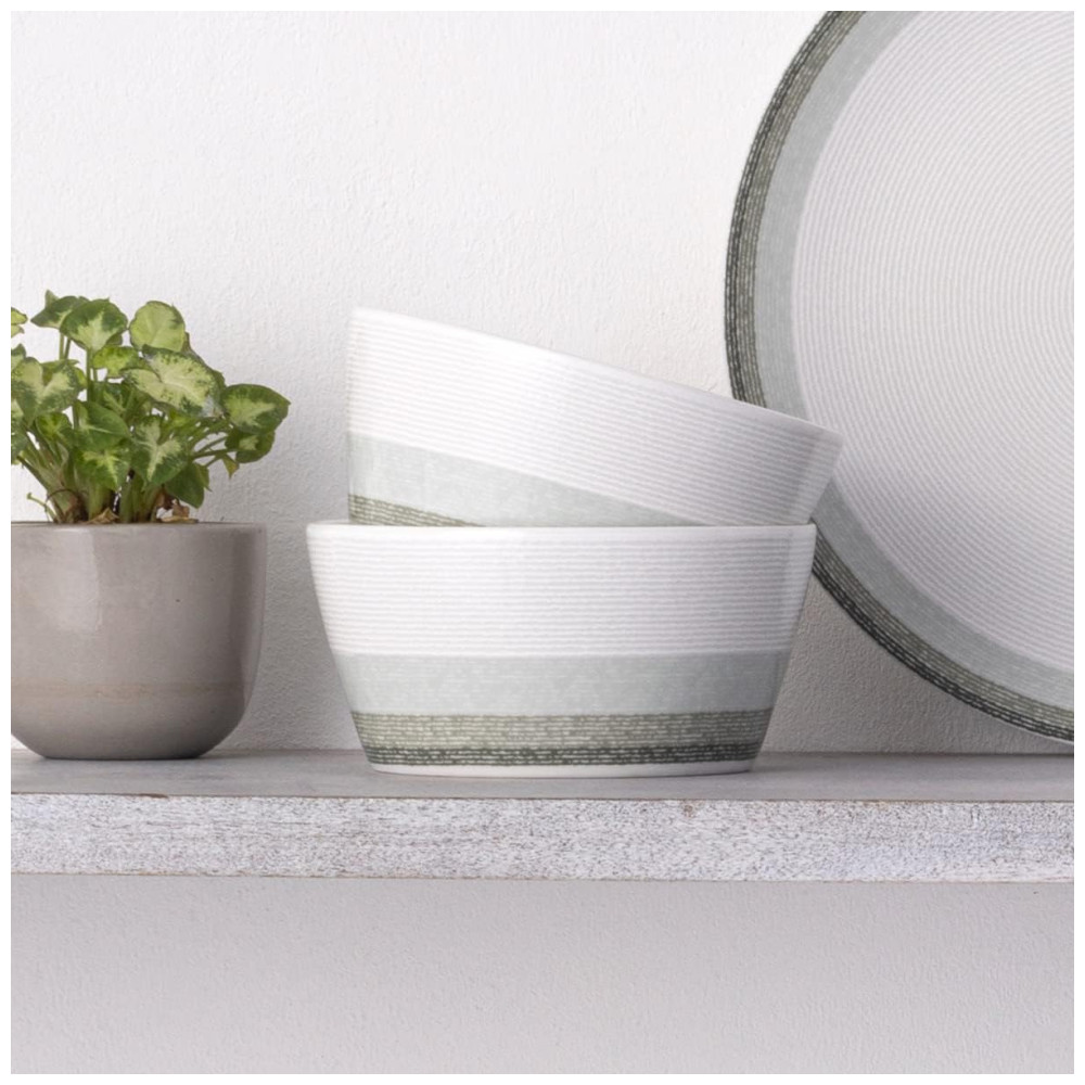 Inclui: conjunto de 4 tigelas Colorscapes Layers Sage para sopa ou cereal, com 15 cm de diâmetro e capacidade de 740 ml, em verde e branco.