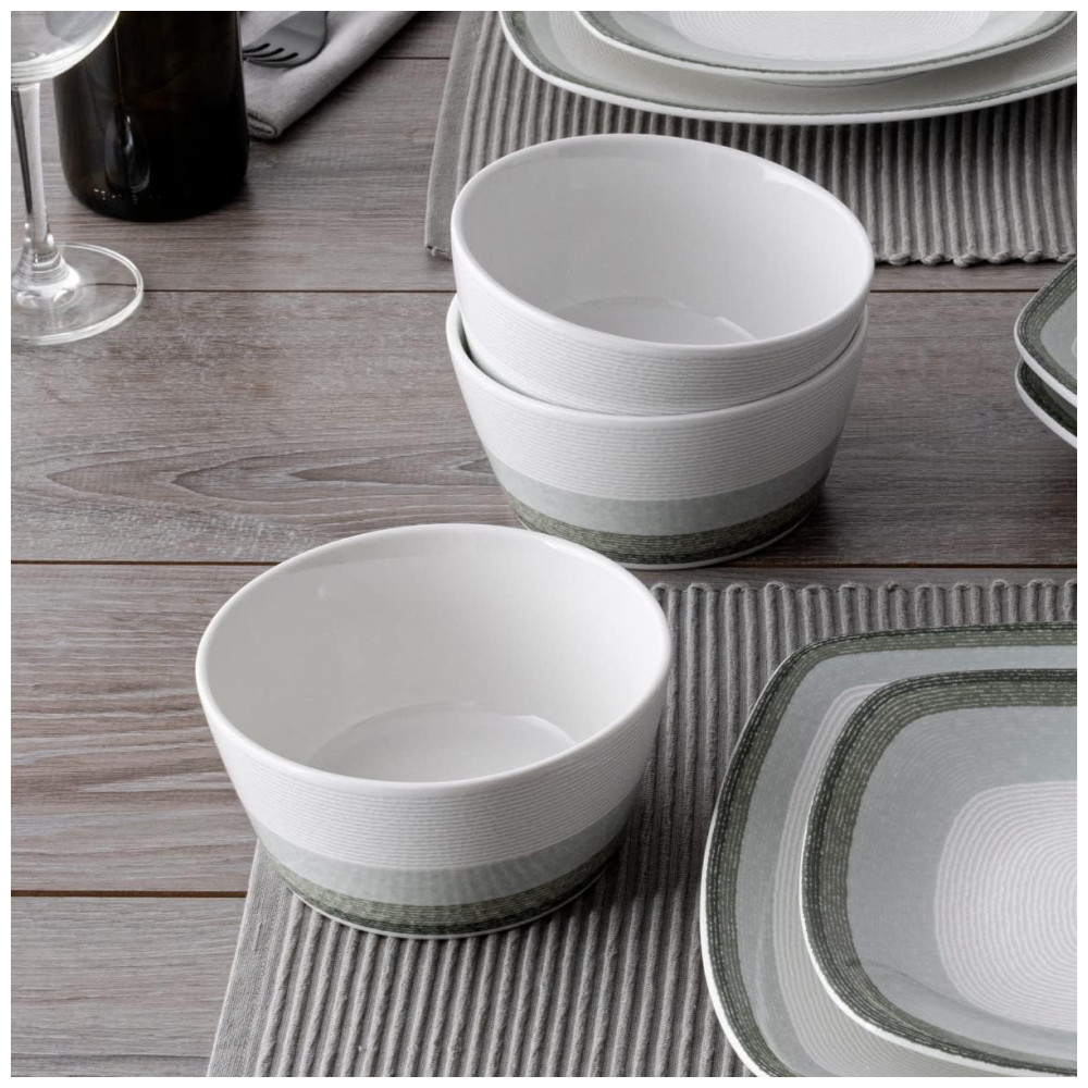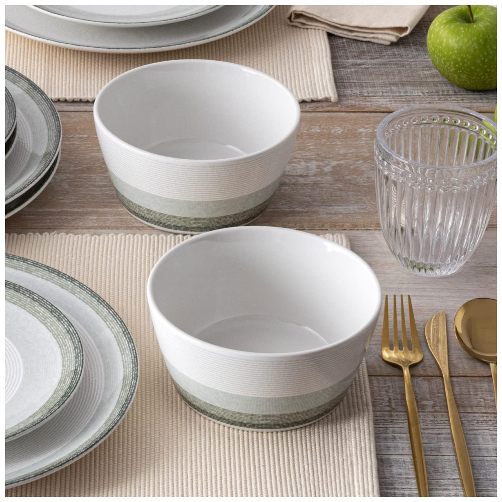 Conjunto de Tigelas 740mL com 4 Peças Material de Porcelana e Formato Redondo Noritake G037-500D Branco e Verde