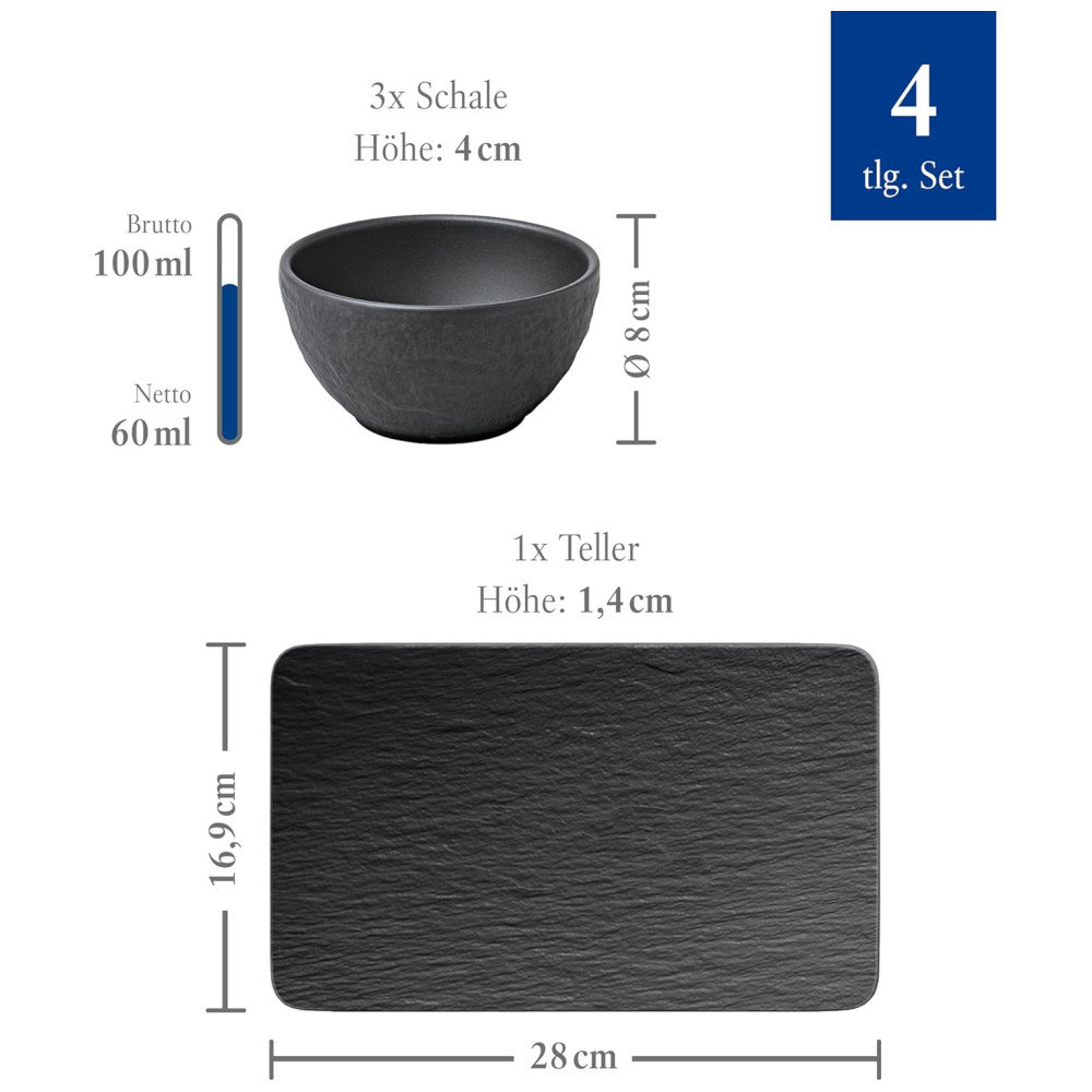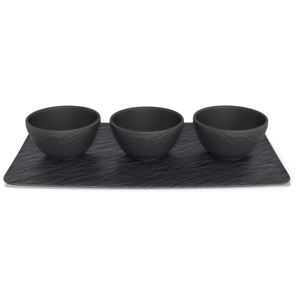 Conjunto de Tigelas e Bandeja de Servir com Estilo Moderno Material de Porcelana Formato Redondo e 4 Peças Villeroy Boch Preta