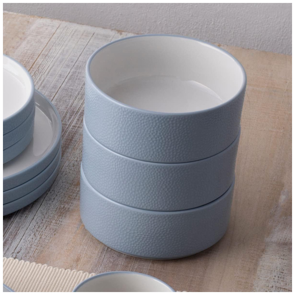 Conjunto de Tigelas Estilo Minimalista com 4 Peças Capacidade de 600mL Material de Porcelana e Formato Redondo Noritake G009-200D Azul
