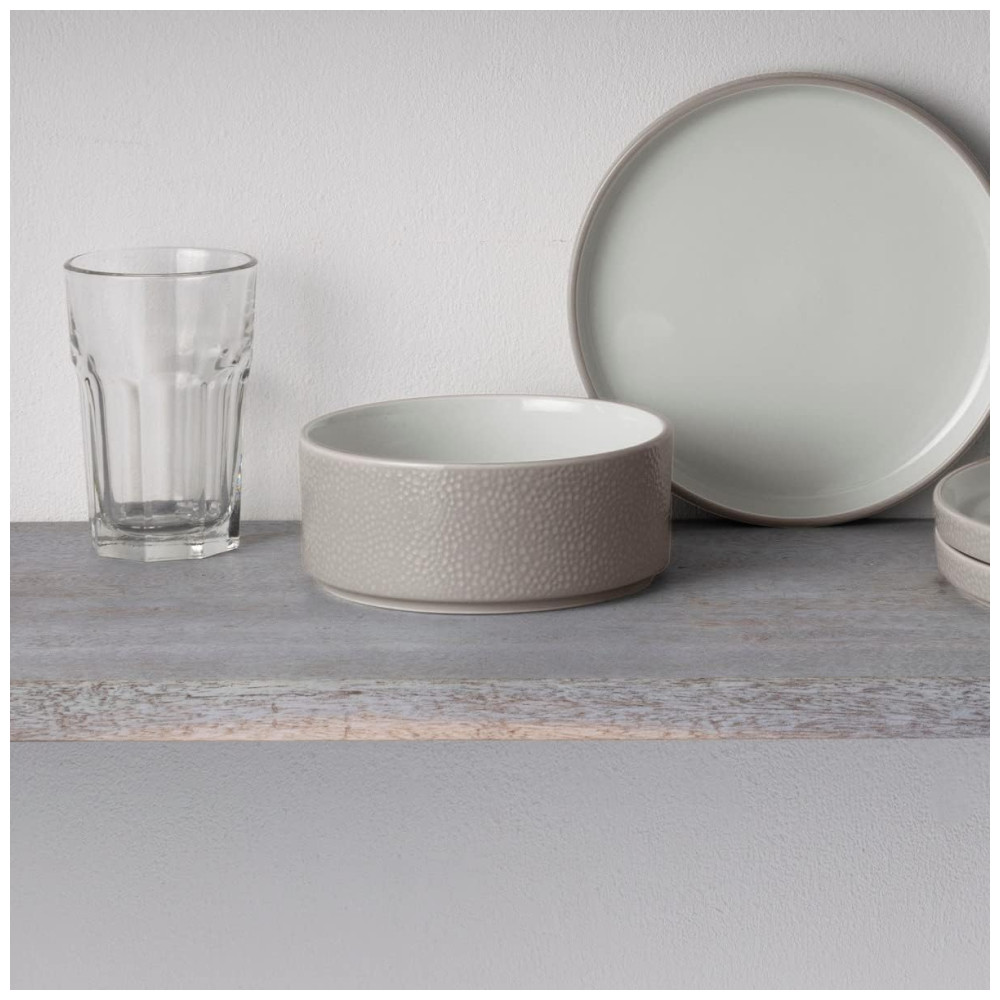 Os itens da coleção se combinam de forma harmoniosa: o prato pequeno funciona como tampa para a tigela pequena e a caneca, enquanto o prato de salada serve como tampa para o prato fundo. O prato de jantar, por sua vez, pode ser utilizado como tampa para a tigela de servir, proporcionando versatilidade e praticidade.