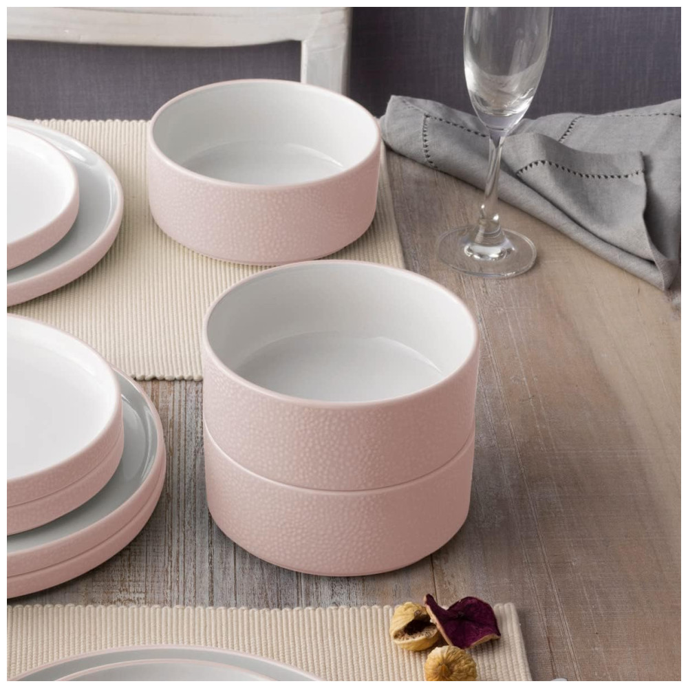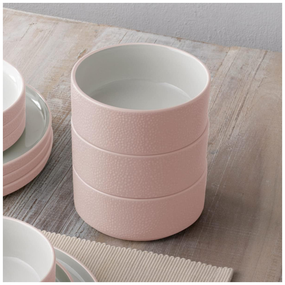 Conjunto de Tigelas Estilo Minimalista com 4 Peças Capacidade de 600mL Material de Porcelana e Formato Redondo Noritake G014-200D Rosa
