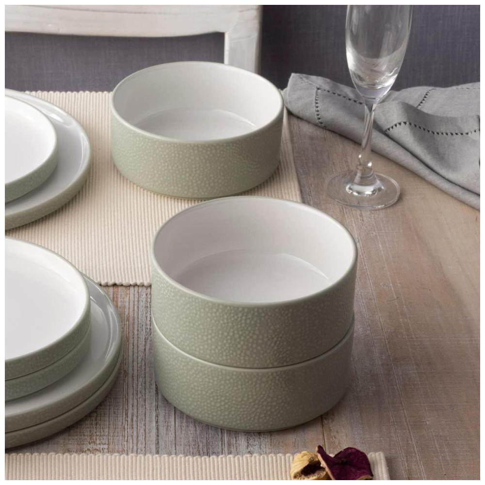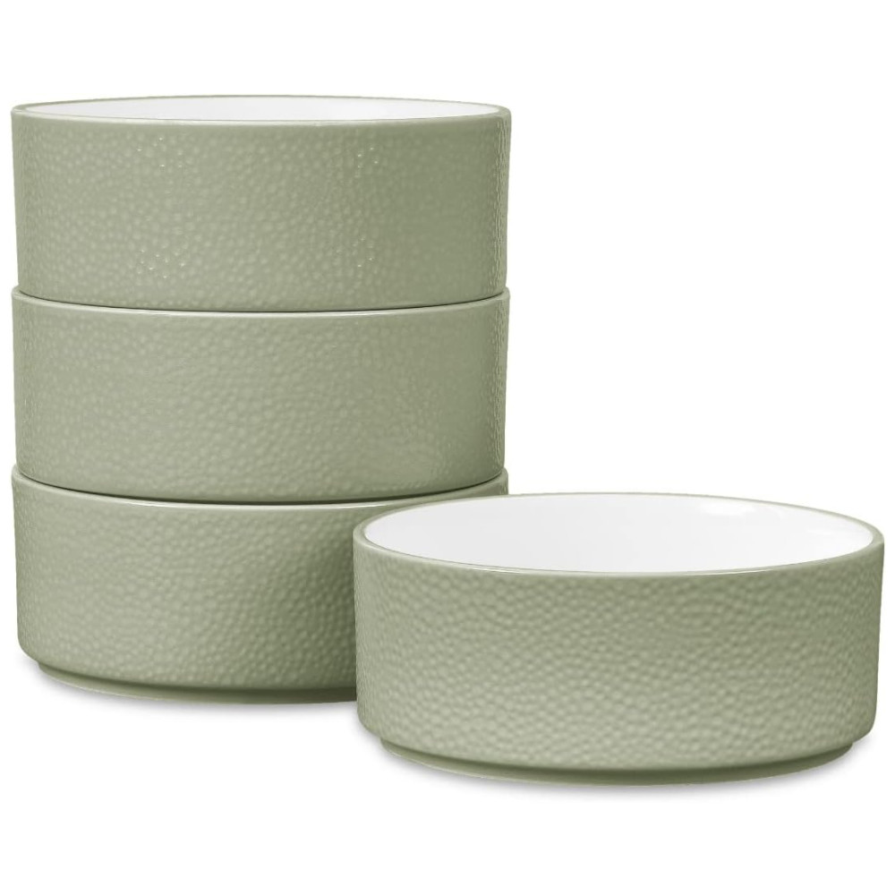 Conjunto de Tigelas Estilo Minimalista com 4 Peças Capacidade de 600mL Material de Porcelana e Formato Redondo Noritake G030-200D Verde