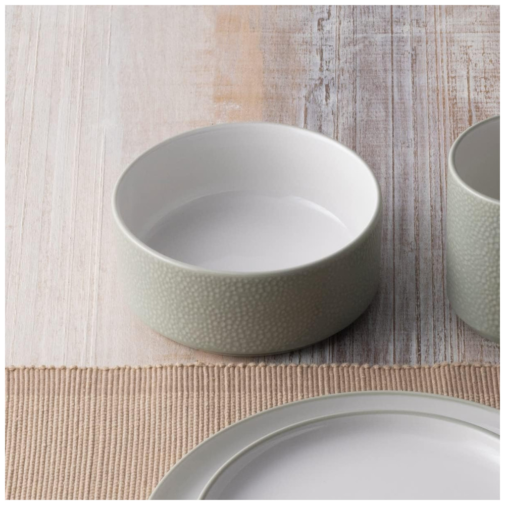 Os itens da coleção foram projetados para se encaixar perfeitamente: o prato pequeno pode ser utilizado como tampa para a tigela pequena e a caneca, enquanto o prato de salada serve como tampa para o prato fundo. O prato de jantar, por sua vez, pode ser usado como tampa para a tigela de servir, oferecendo versatilidade e funcionalidade à sua mesa.