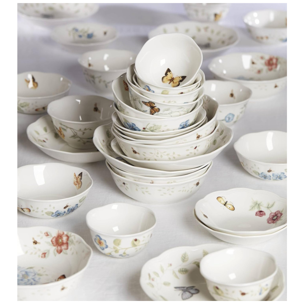 Essas tigelas de sopa apresentam o design clássico Butterfly Meadow, com um vibrante padrão floral no centro e bordas suavemente recortadas que destacam cada ilustração inspirada no jardim. São perfeitas para sopa de macarrão de galinha, ensopados, cereais e até lanches, oferecendo versatilidade para o uso diário.