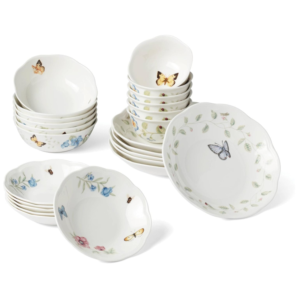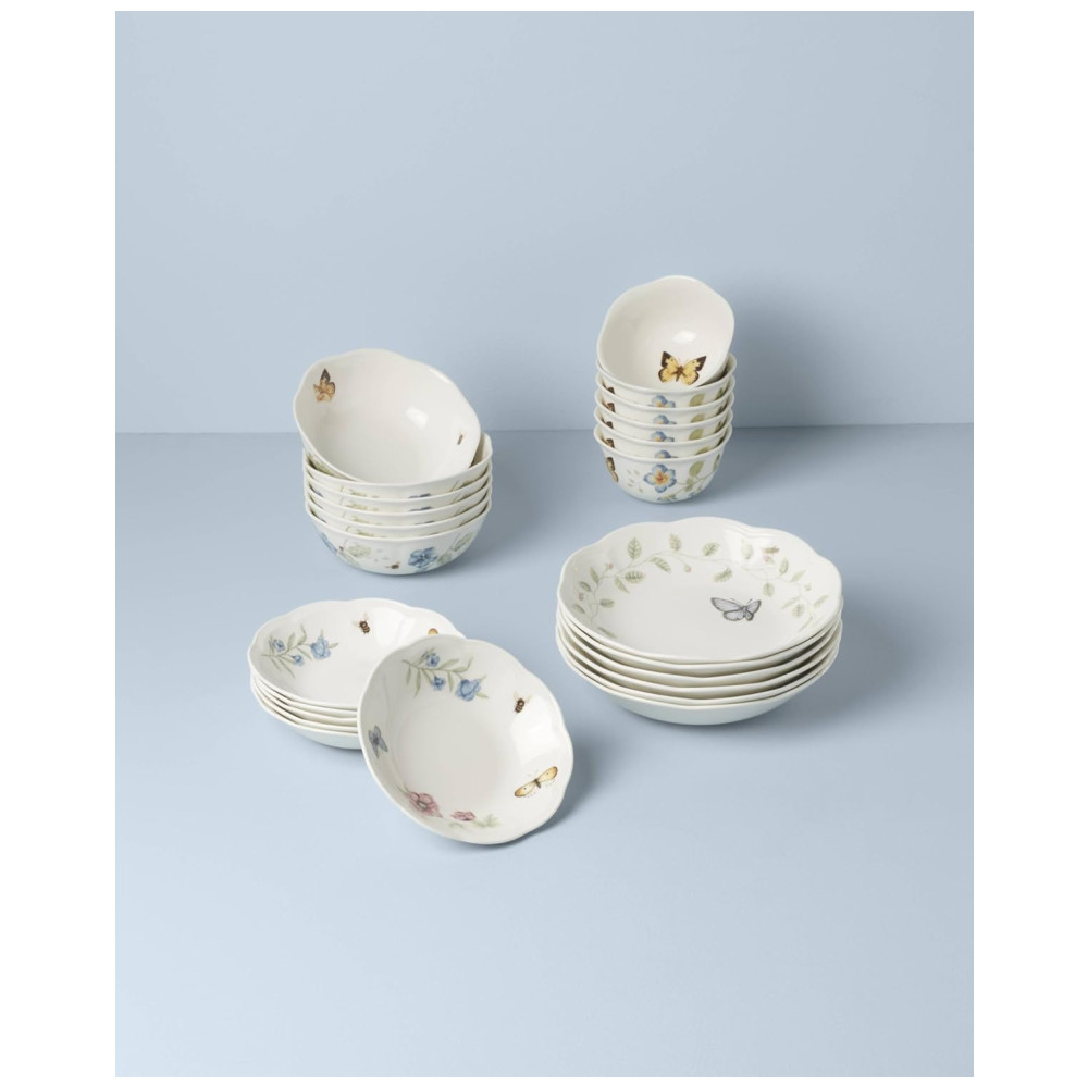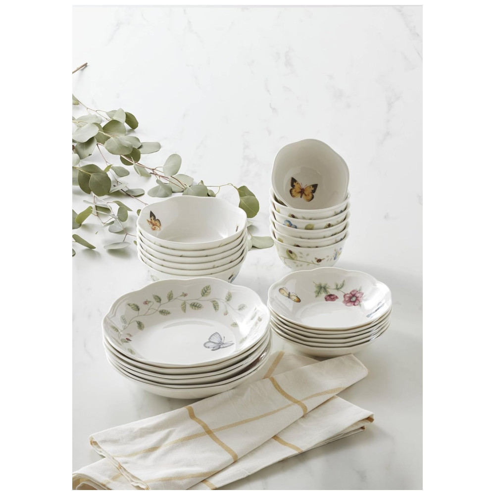 Conjunto de Tigelas Tema de Borboletas com 24 Peças Material de Porcelana e Formato Redondo Lenox 895704 Branco Colorido