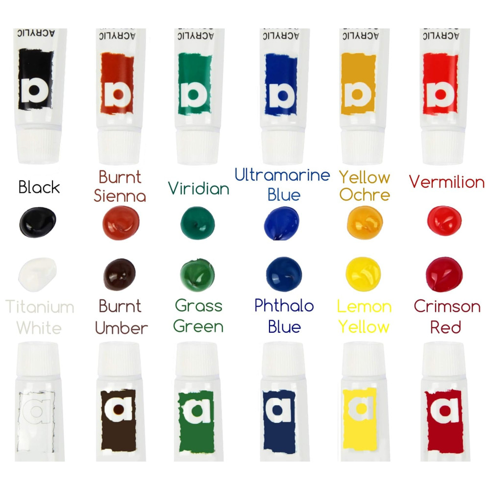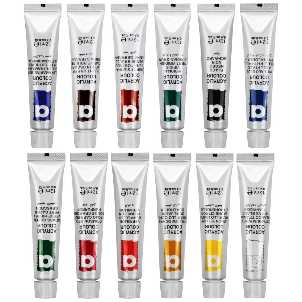 Kit de tubos de acrílico brilhante 12 ml 12pc e painéis de tela forte de MDF 22 x , 2pc