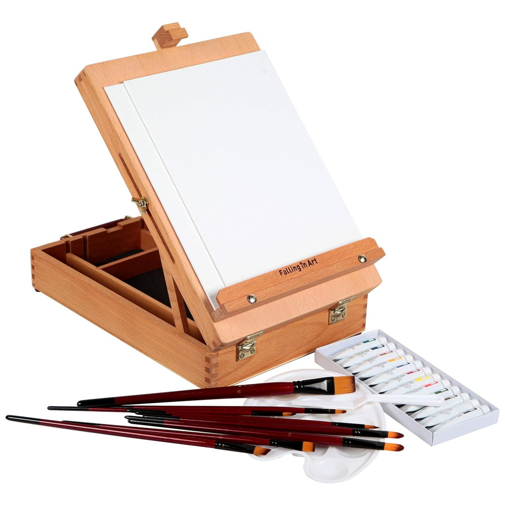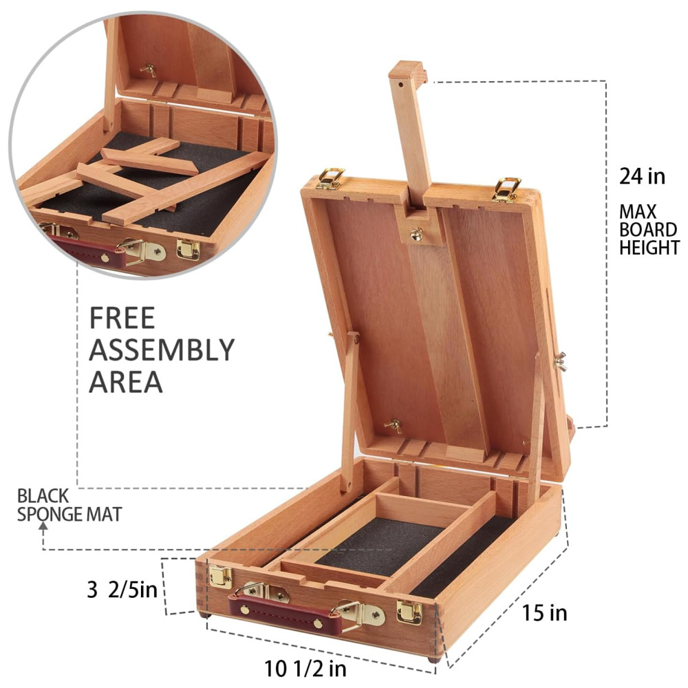 Cavalete de caixa de madeira de faia este cavalete de caixa de estúdio pode conter telas de até e tem 5 compartimentos de zenamento, pode organizar bem suas ferramentas de arte