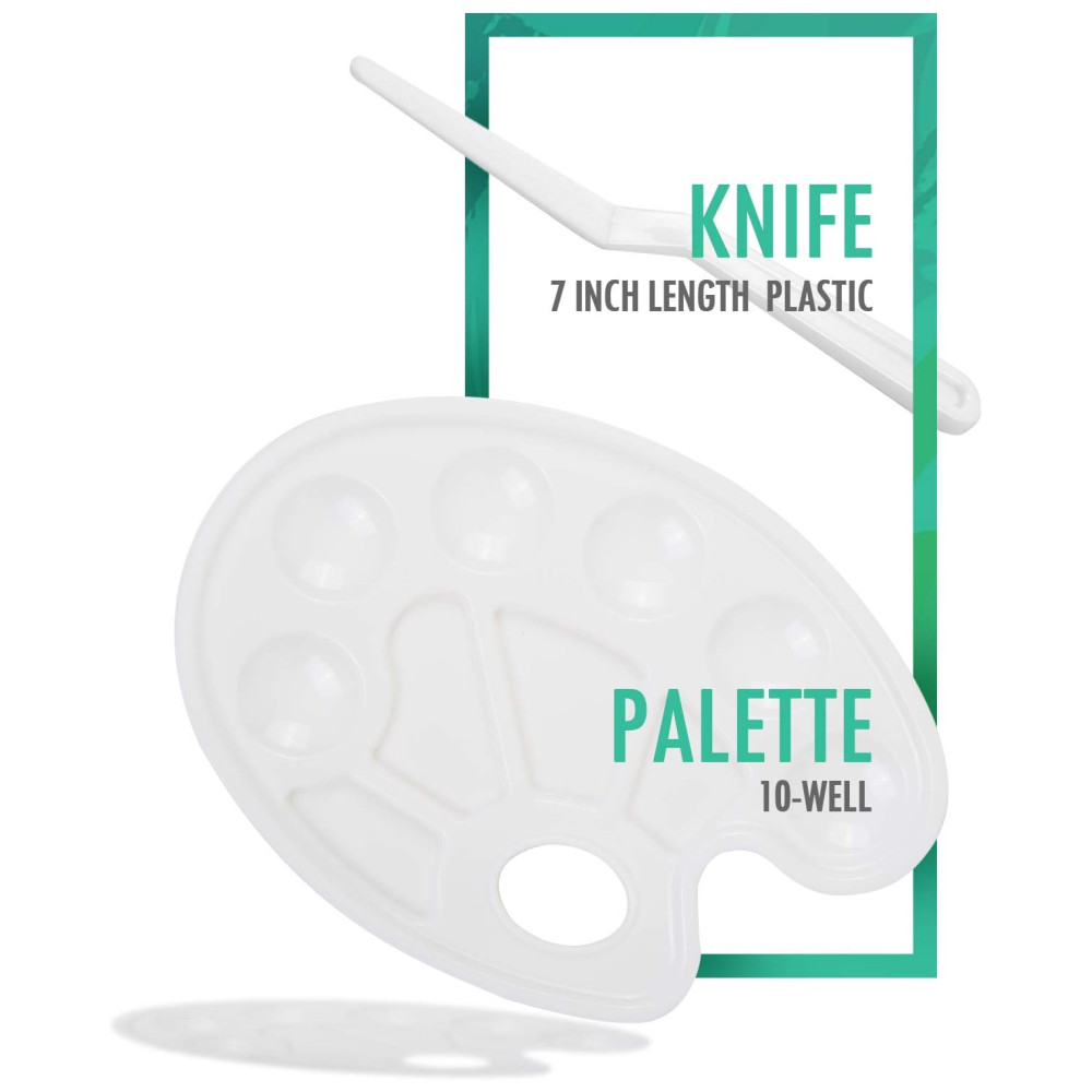 Paleta portátil de 1 unidade de 10 poços e faca de mistura de plástico de 1 unidade podem ajudar em suas pinturas acrílicas
