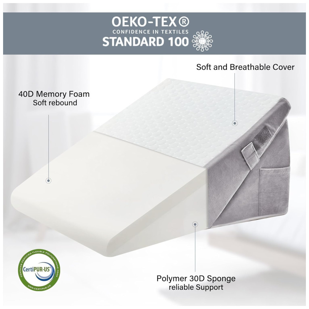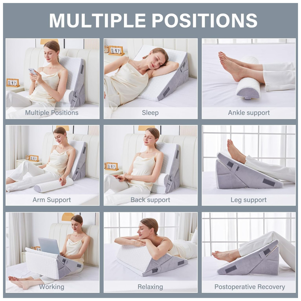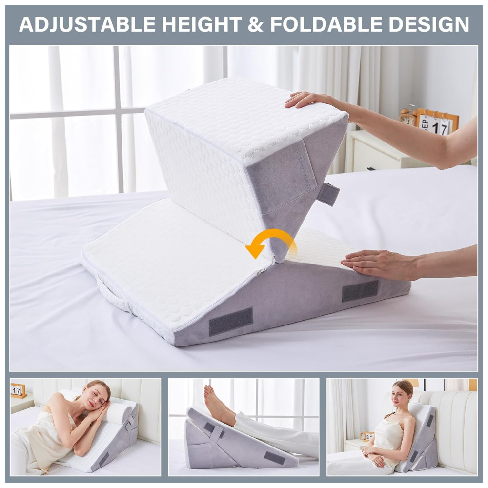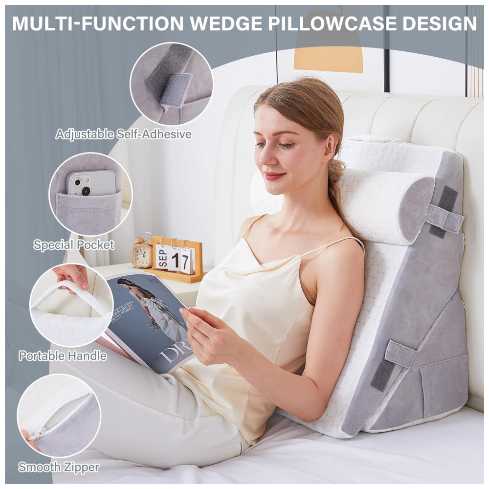 Com um velcro ajustável e alongado, o travesseiro em cunha permite configurações personalizáveis de acordo com suas necessidades. Seja para sentar, deitar ou reclinar, ele oferece conforto adaptado às suas preferências.