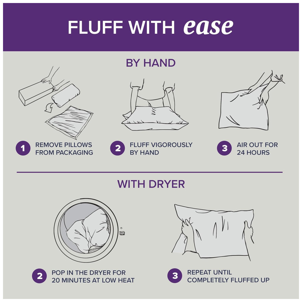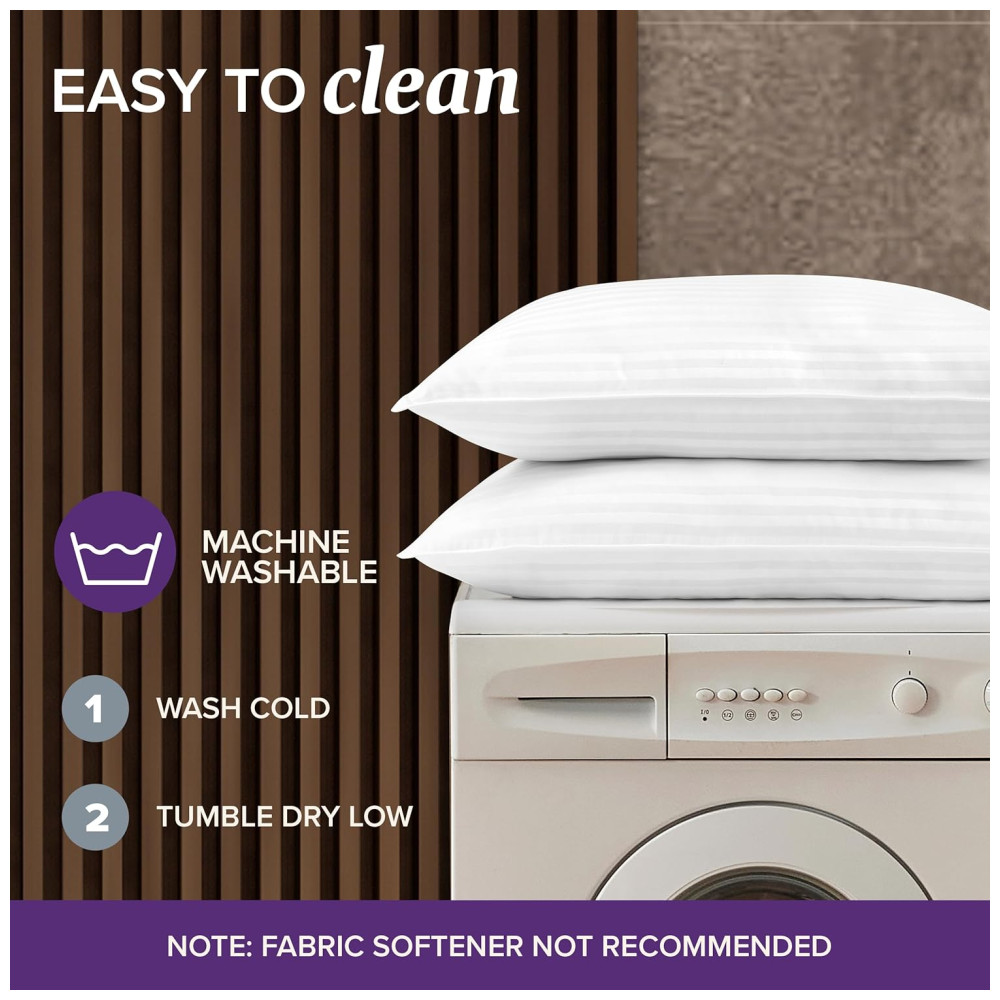 A manutenção é simples: pode ser lavado na máquina, mas não deve ser colocado na secadora. Com um design de pelúcia rebatível, este travesseiro oferece suporte em qualquer posição de sono, mantendo sua forma firme e ao mesmo tempo macia.