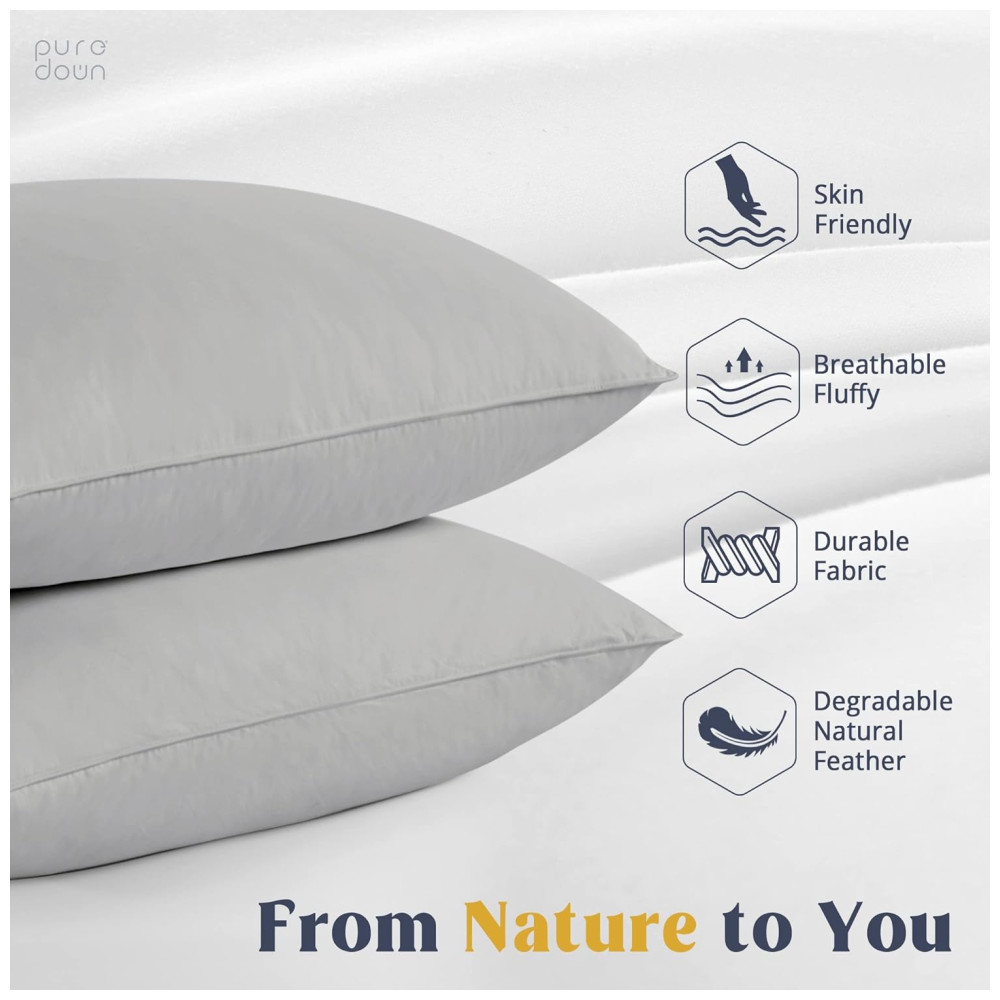 Conjunto de Travesseiros de Penas de Ganso Tamanho King com 2 Peças e Capa 100% Algodão Puredown Cinza