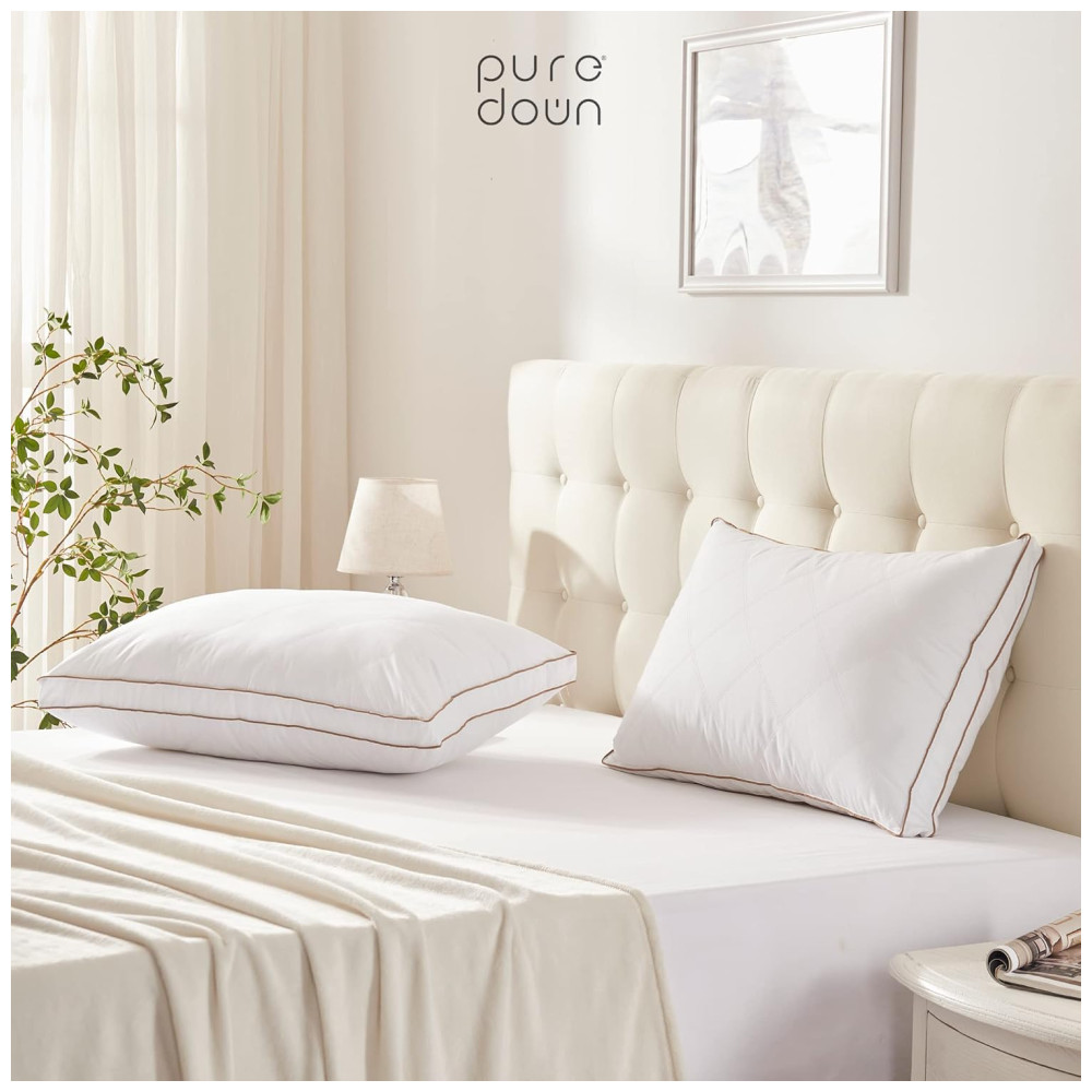Conjunto de Travesseiros de Penas de Ganso Tamanho Padrão com 2 Peças e Capa 100% Algodão Macia e Respirável Puredown Branco