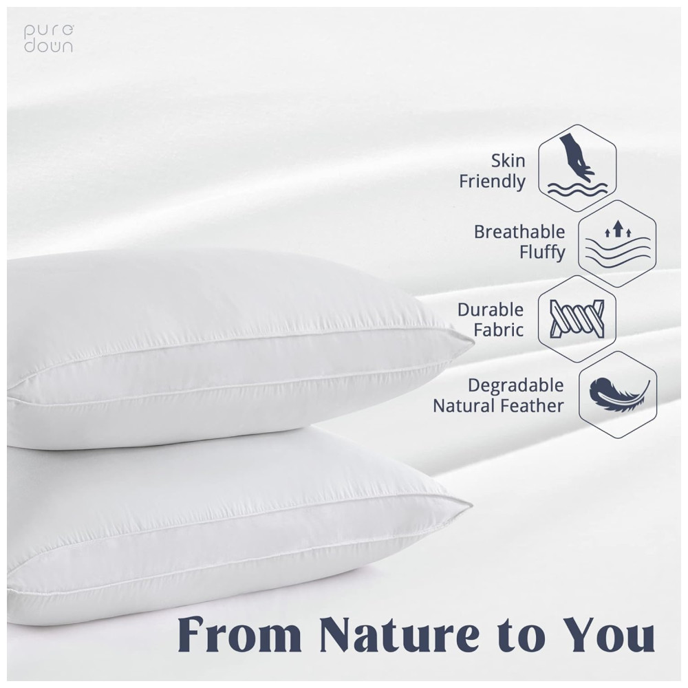 Conjunto de Travesseiros de Penas de Ganso Tamanho Padrão com 2 Peças e Capa 100% Algodão Puredown Branco