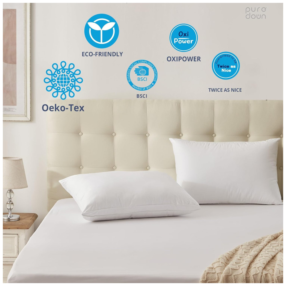 O design ergonômico, com reforço oval, mantém a forma do travesseiro, garantindo um equilíbrio perfeito entre maciez e firmeza, suportando confortavelmente a cabeça e o pescoço. As penas oferecem suporte resiliente, enquanto a penugem adiciona uma camada extra de suavidade.