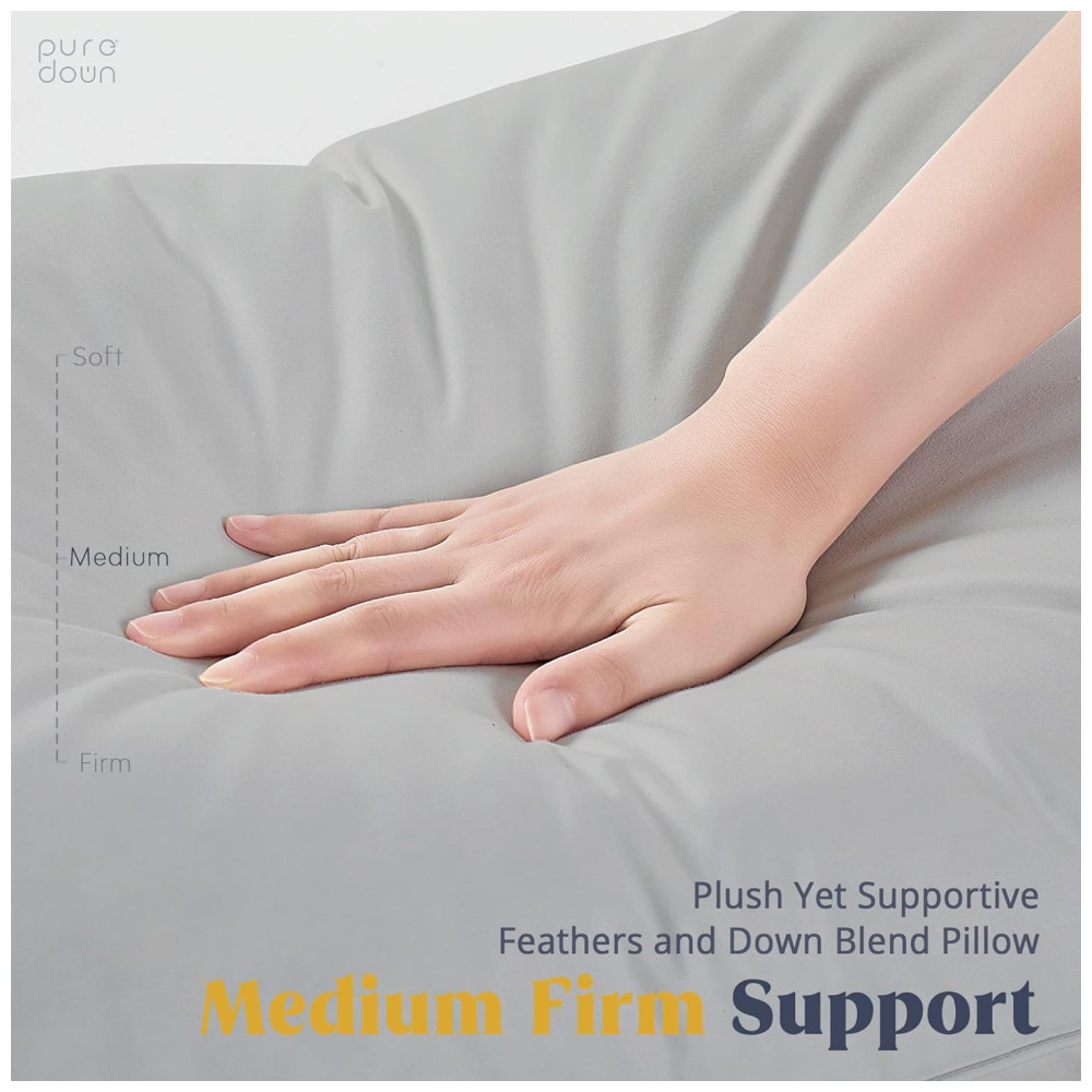 Conjunto de Travesseiros de Penas de Ganso Tamanho Padrão com 2 Peças e Capa 100% Algodão Puredown Cinza