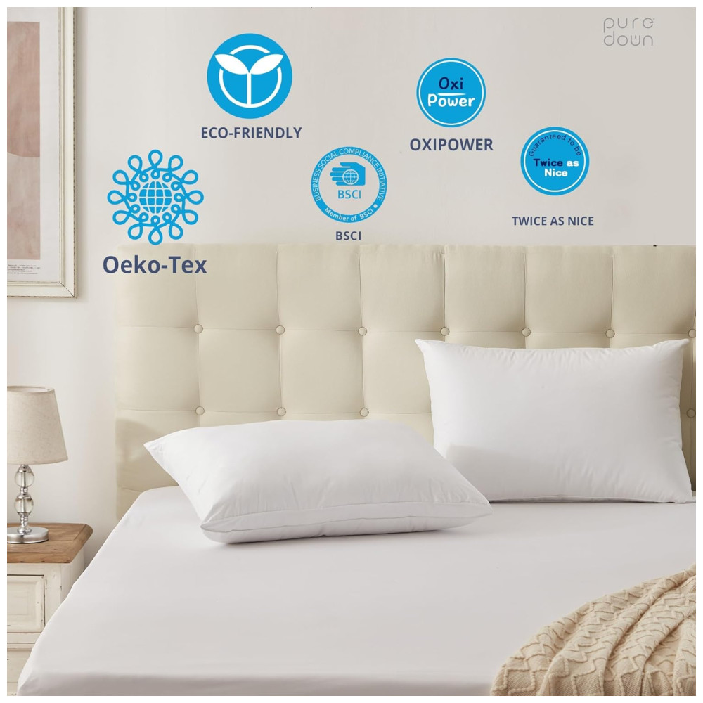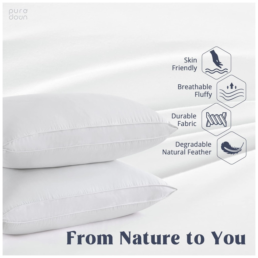 Conjunto de Travesseiros de Penas de Ganso Tamanho Queen com 2 Peças e Capa 100% Algodão Puredown Branco
