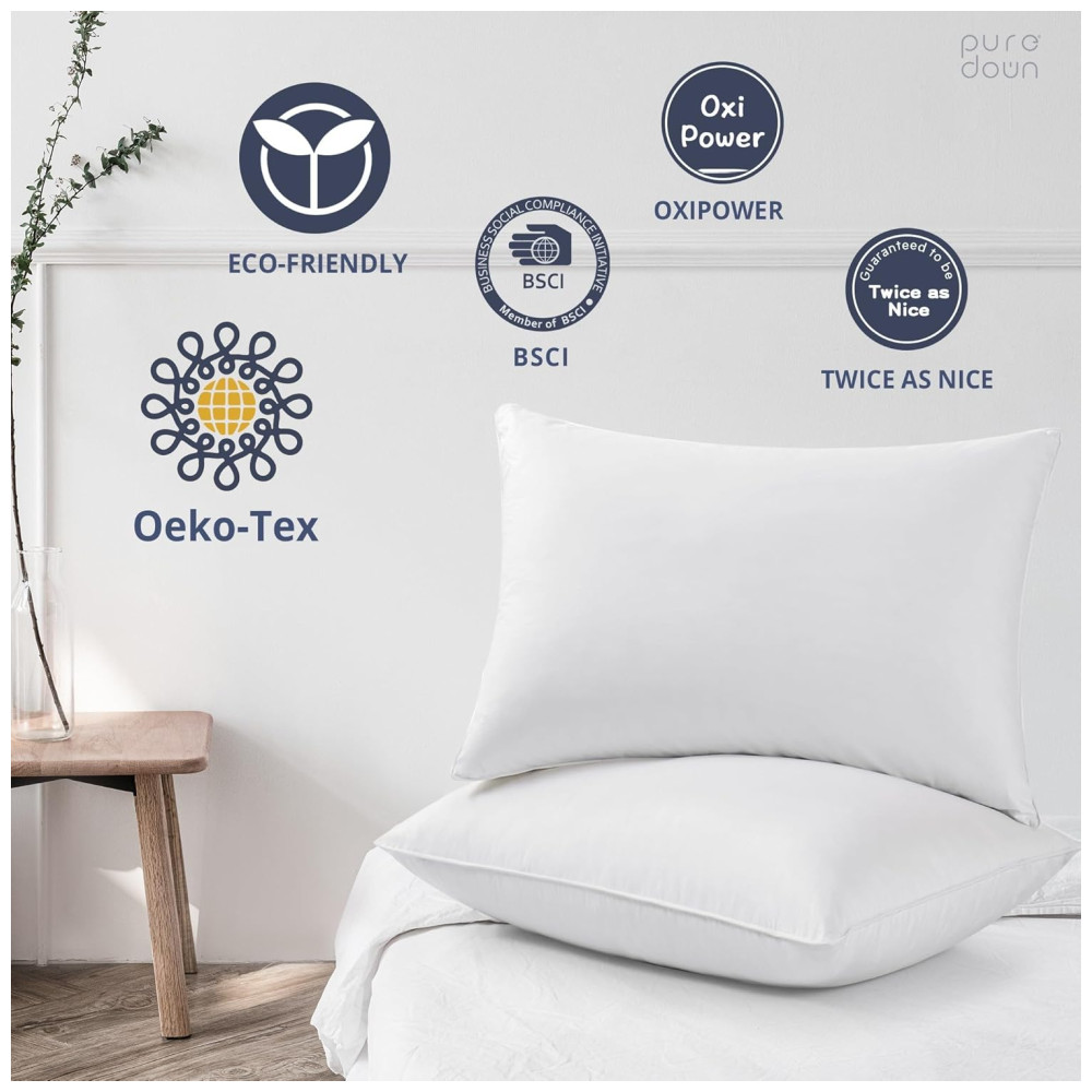 Conjunto de Travesseiros de Penas e Plumas de Ganso Tamanho King com 2 Peças e Capa 100% Algodão Macio Puredown Branco Clássico