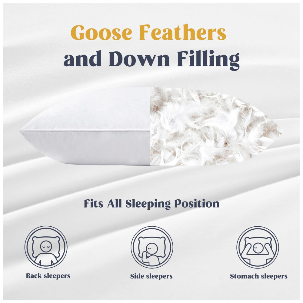 Conjunto de Travesseiros de Penas e Plumas de Ganso Tamanho Padrão com 2 Peças e Capa 100% Algodão Macio Puredown Branco Clássico