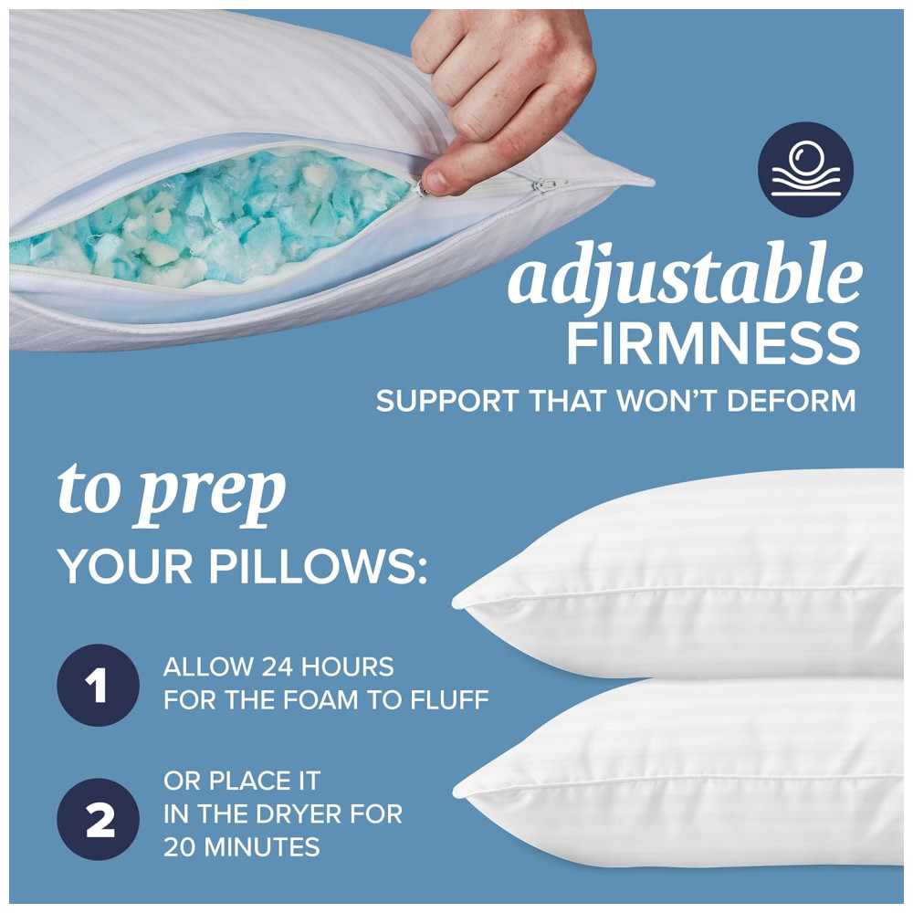 Se você tende a superaquecer durante a noite, este travesseiro é a solução ideal, pois a espuma de memória triturada proporciona respirabilidade e alívio para quem sofre com suores noturnos. Com um design ajustável, você pode encontrar a combinação perfeita para o seu sono.