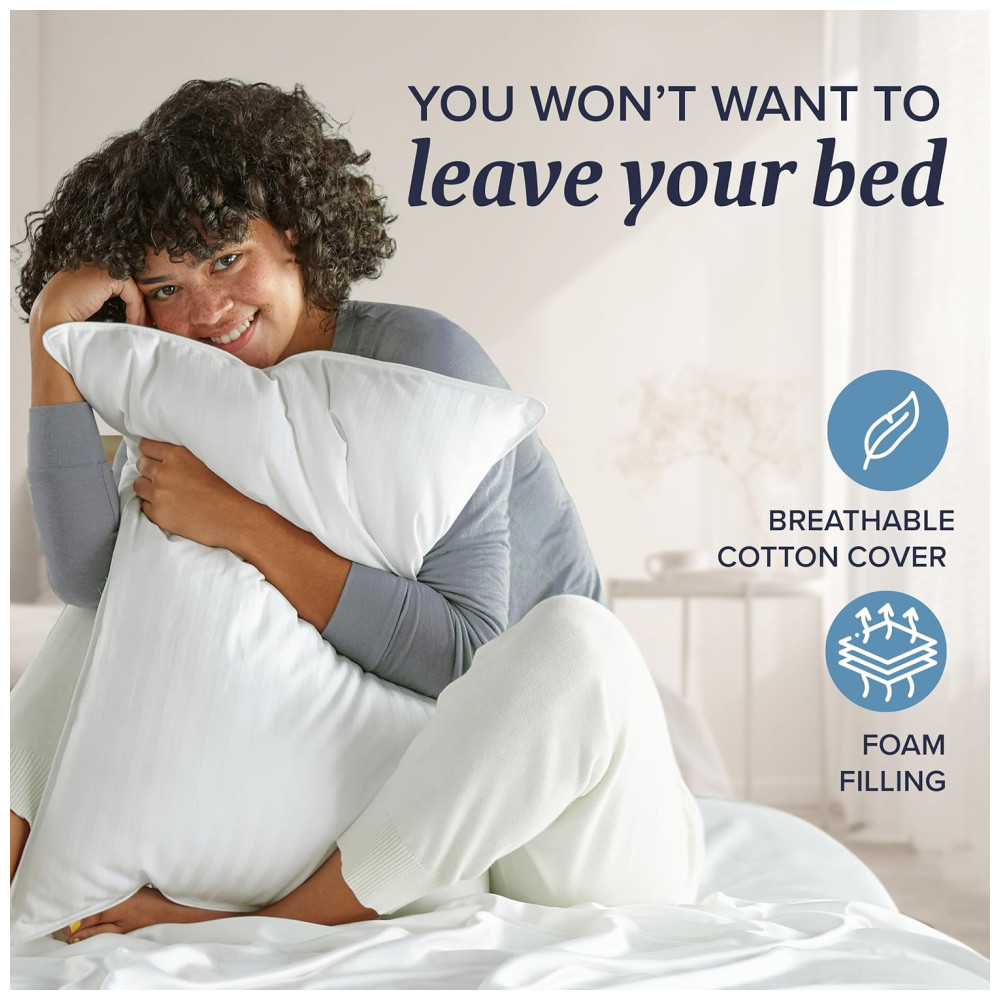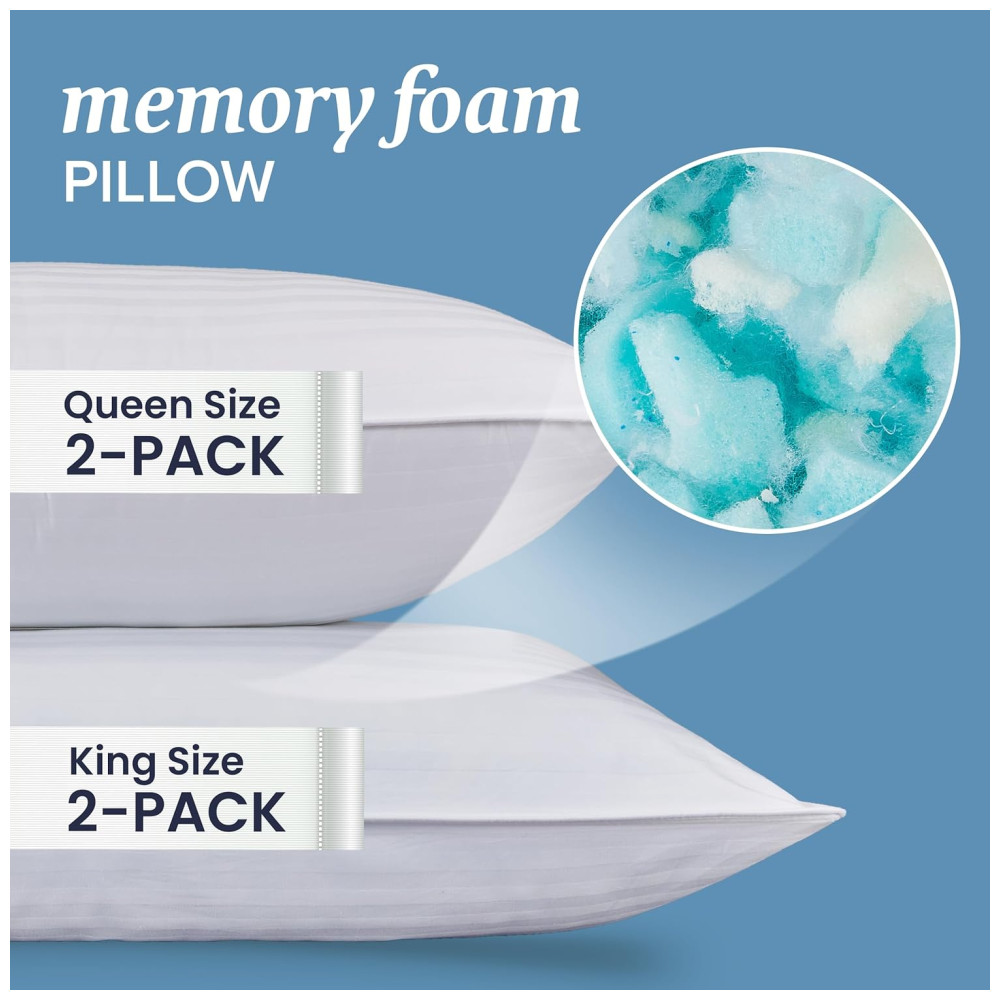 Os travesseiros Queen/Standard apresentam uma capa de 250 fios e são preenchidos com espuma de memória macia e triturada, oferecendo um conforto superior durante o sono. Eles são um presente essencial para quem está montando o primeiro apartamento ou casa nova, perfeitos para quartos, quartos de hóspedes, dormitórios universitários ou como decoração para o lar.
