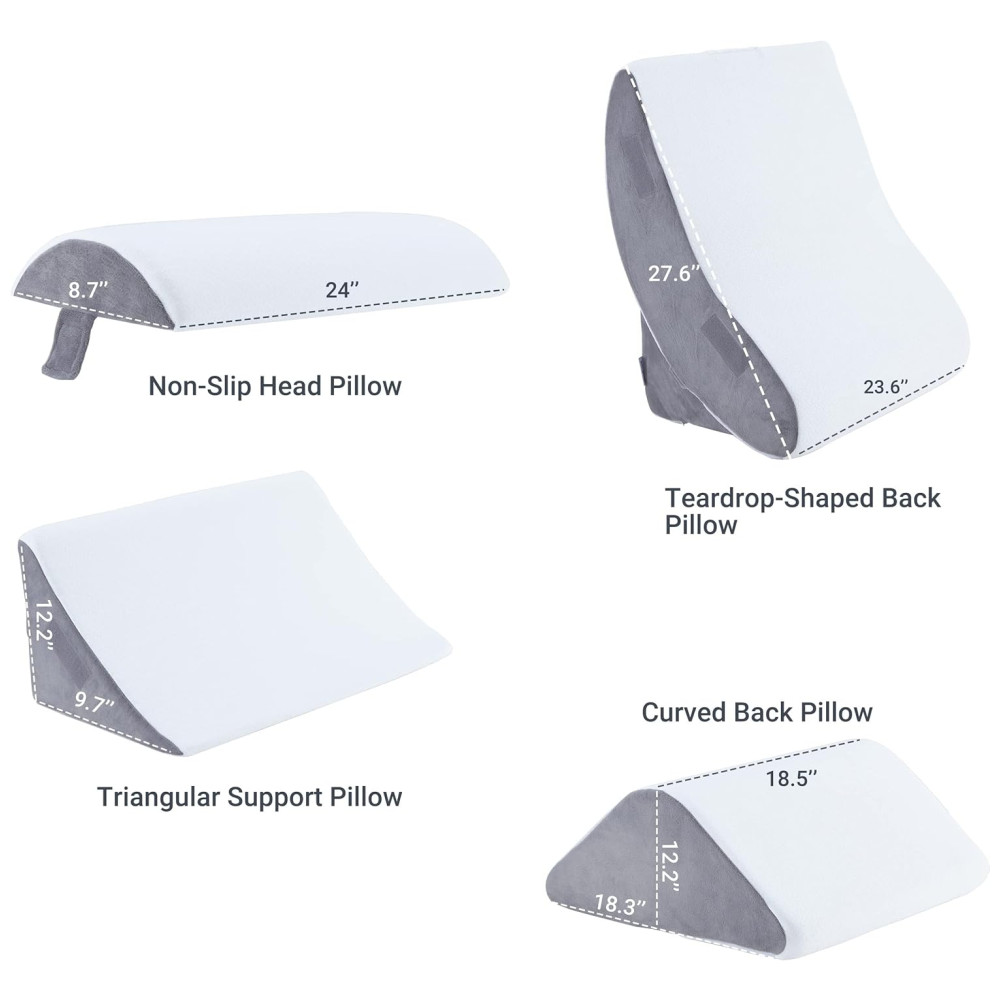 Conjunto de Travesseiros Ortopédicos 4 Pcs Pós-Cirurgia Espuma de Memória Suporte Ajustável para Pernas e Costas Kingfun Branco e Cinza
