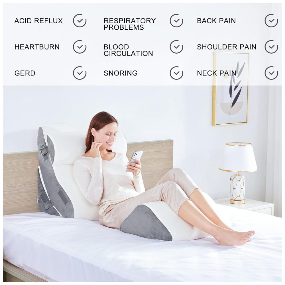 Esse conjunto de travesseiros em cunha é uma excelente escolha para quem busca alívio ortopédico, conforto personalizável e versatilidade para várias atividades, desde o descanso pós-cirúrgico até o relaxamento diário.