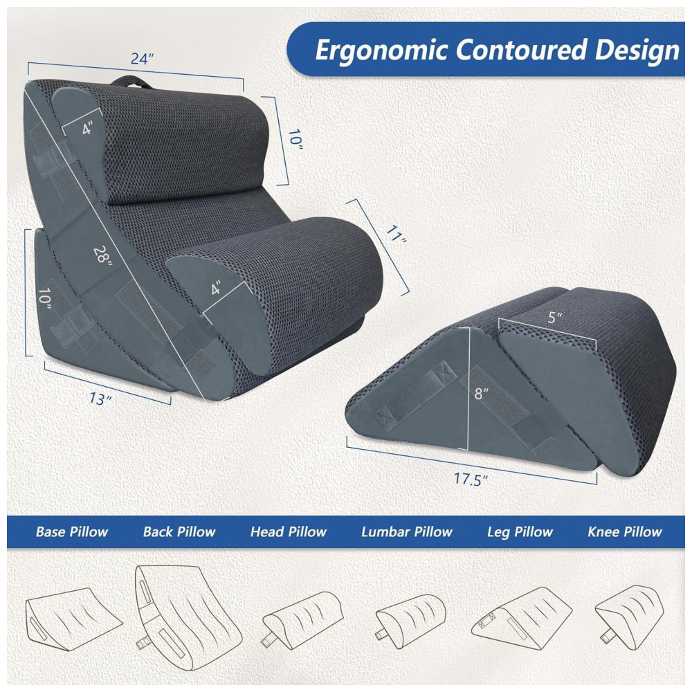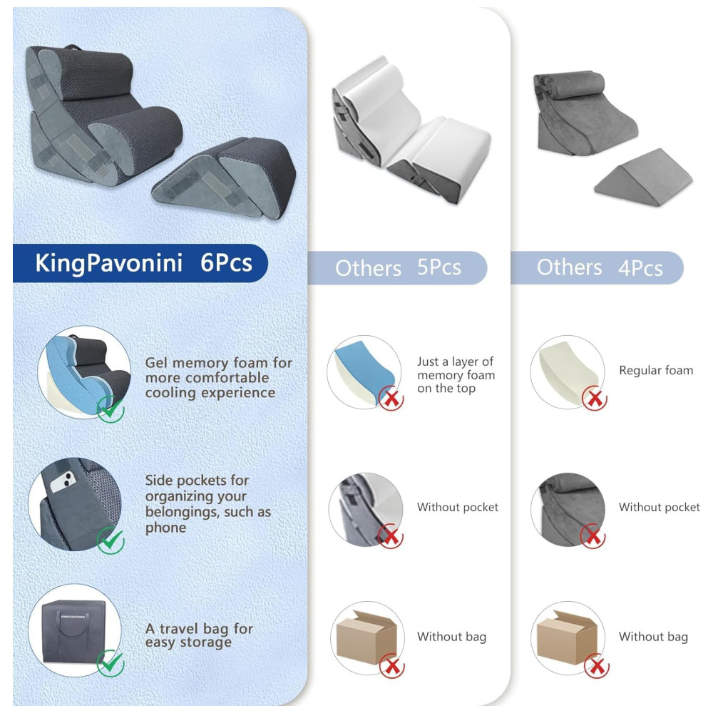 Conjunto de Travesseiros Ortopédicos 6PCS XL Espuma de Memória em Gel para Refluxo Ácido Pós-Cirúrgico Suporte para Costas KingPavonini Cinza