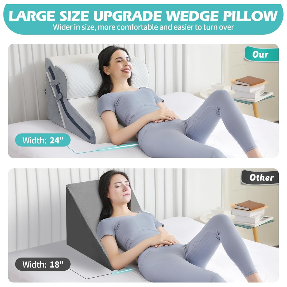 Seja para assistir TV, usar dispositivos móveis, ler ou aliviar sintomas noturnos, o design ajustável permite encontrar até 20 posições confortáveis. Incline entre 30°, 45° e 60° ou personalize o ângulo para relaxamento diário ou sono reparador.