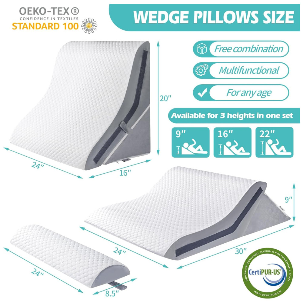 Variedade almofadas de cunha para dormir, conjunto de almofadas de cunha para cama ortopédica, almofada de encosto para sentar na cama