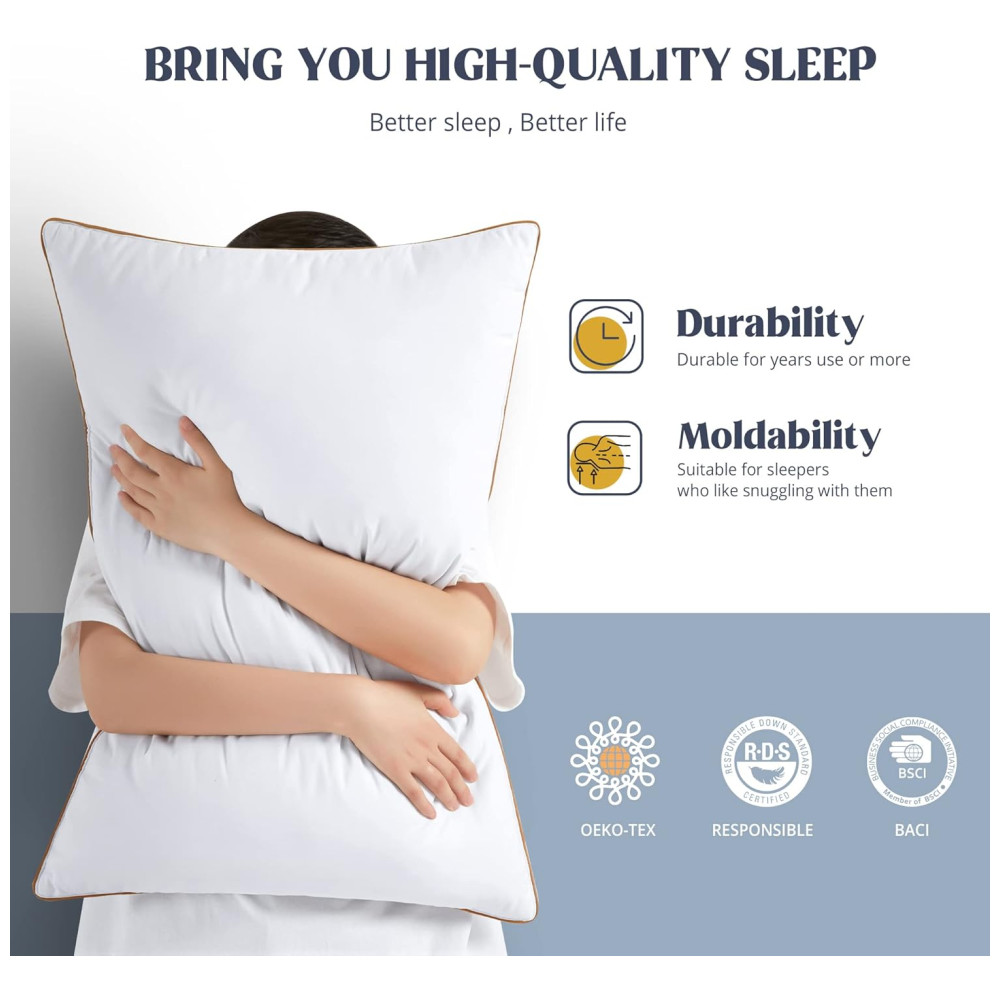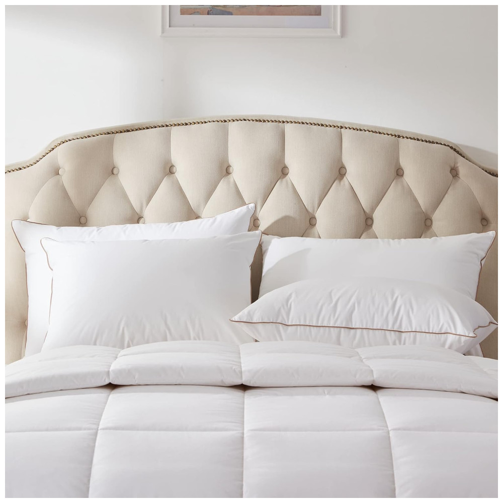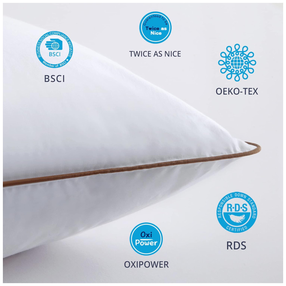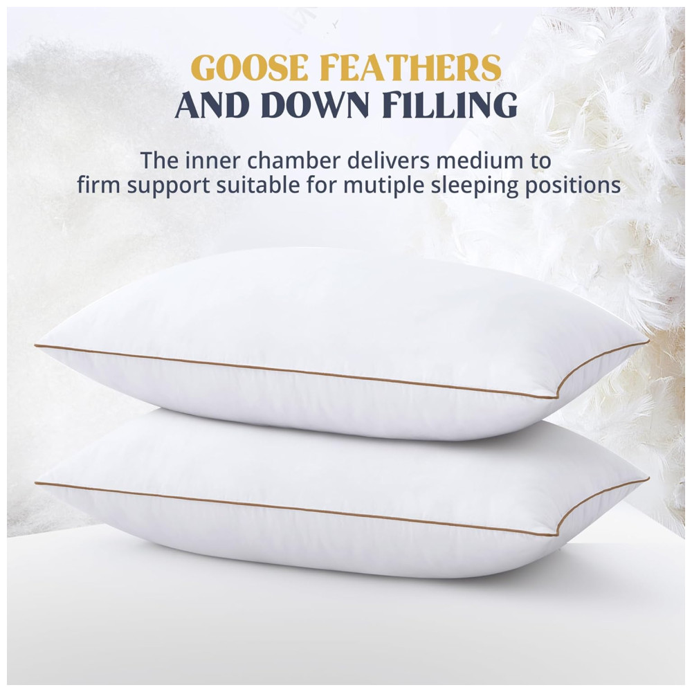 Cada travesseiro é suave ao toque, mas com um suporte ideal, garantindo durabilidade e conforto ao longo do tempo. O enchimento de plumas e penas é cuidadosamente selecionado de matérias-primas premium, que retornam facilmente à sua forma original, proporcionando uma sensação leve, mas com suporte.