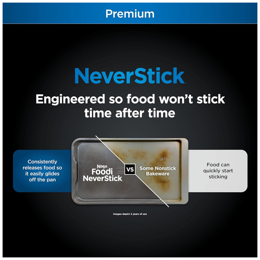 O revestimento NeverStick foi projetado para liberar os alimentos com facilidade, facilitando o desenforme de bolos, pães, tortas e muffins e tornando a limpeza mais simples, tanto na lavagem manual quanto em lava-louças. As formas suportam uso em forno com temperatura de até 260 °C, com paredes profundas que auxiliam a evitar vazamentos de massa e protegem os assados durante o manuseio.
