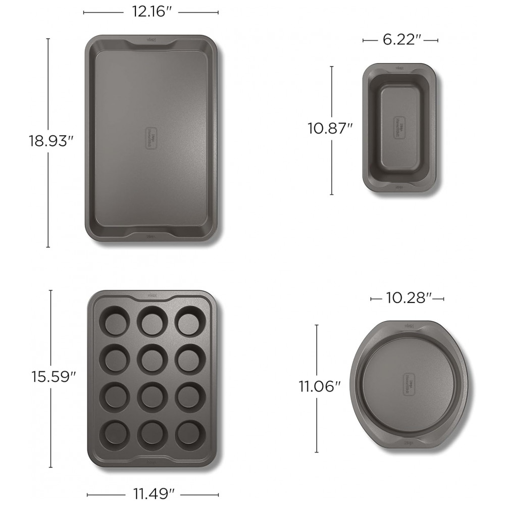 Conteúdo da embalagem: 1 assadeira retangular, 1 forma de bolo inglês, 1 forma de muffin 12 cavidades, 2 formas redondas