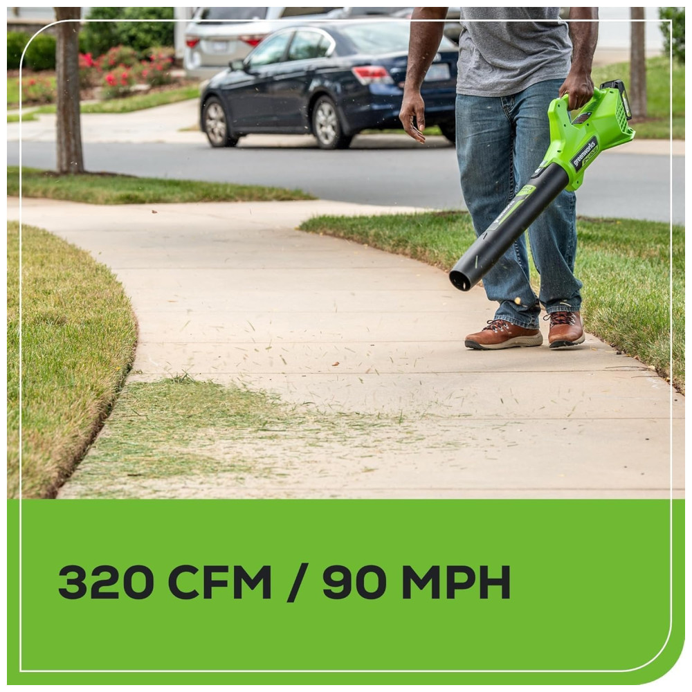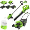 Kit Greenworks 48V: Cortador Brushless Aparador Soprador 320CFM Furadeira 2 Baterias 4.0Ah e 2 Baterias 2.0Ah Carregador Dual