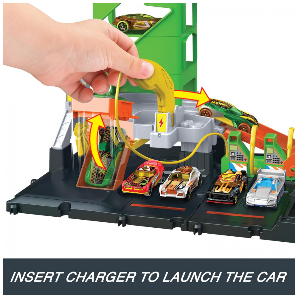 Conjunto Lançador Posto de Recarga de Carros de Brinquedo em Escala 1:64 Inclui Acessórios Hot Wheels City