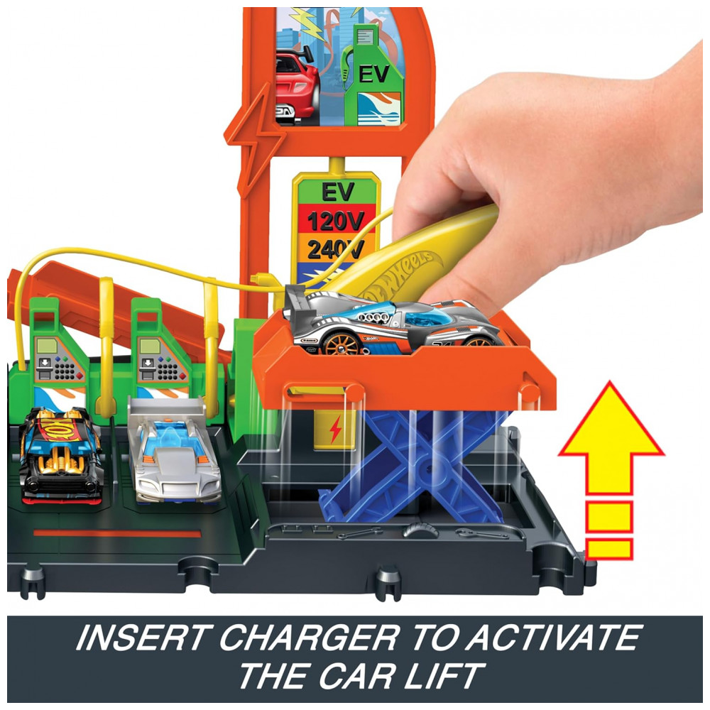 Acelere a diversão com o Posto de Combustível Hot Wheels City Super Recharge, um conjunto dinâmico que oferece uma experiência imersiva para os fãs de Hot Wheels! O conjunto vem com uma mangueira de carregamento de veículo elétrico fictícia, que pode ser conectada em 4 estações diferentes para ativar recursos emocionantes, como lançadores, um elevador de carro e um sinal giratório!