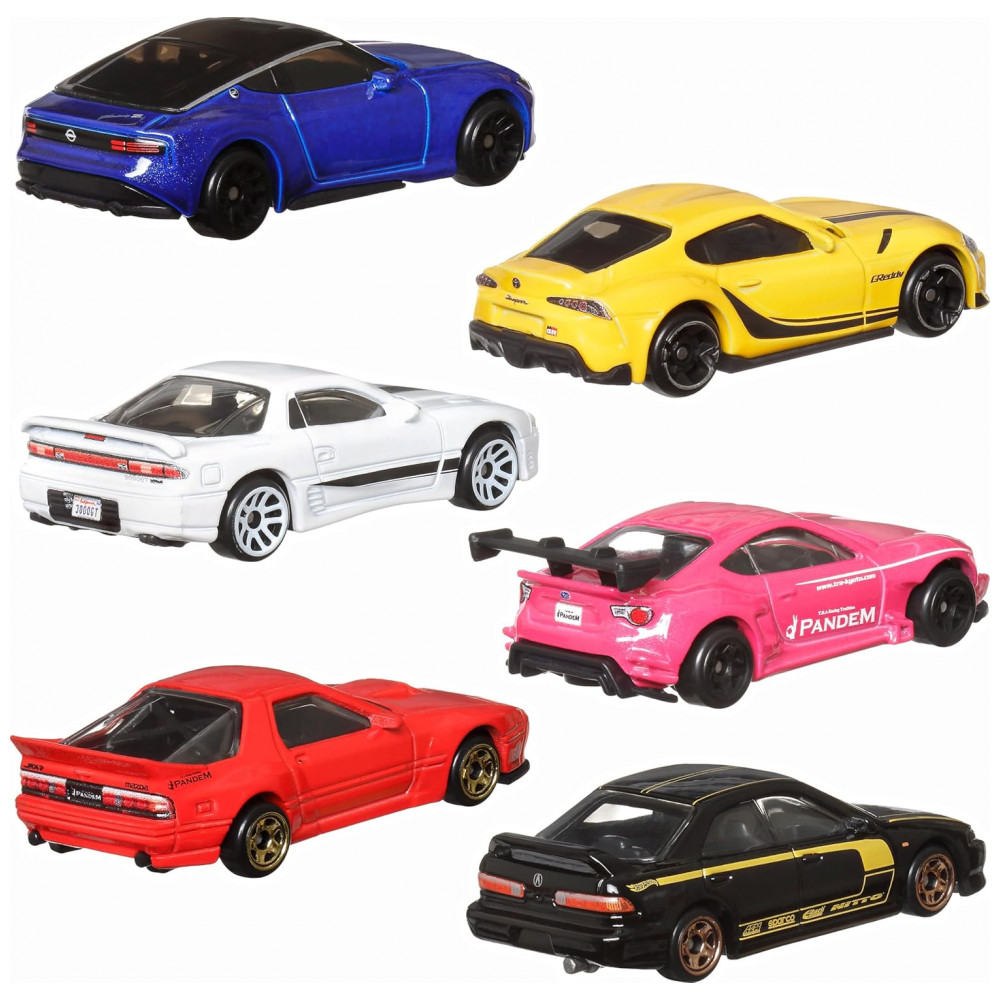 Conjunto Premium de 6 Carros de Brinquedo Hot Wheels Car Culture Escala 1:64 Veículos Japoneses Die-Cast com Estilos Elevados Variados – Pacote Japo