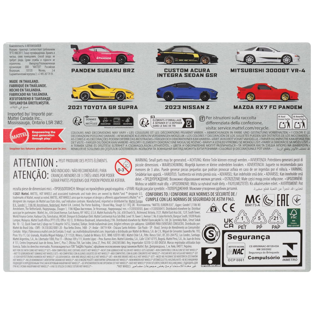 O Conjunto Hot Wheels Streets of Japan vai elevar qualquer coleção de carros a outro nível. Este conjunto de seis veículos de brinquedo na escala 1:64 apresenta modelos modernos e clássicos de automóveis japoneses com acabamento todo em metal. Os fãs vão se encantar com os pacotes temáticos adicionais que incluem ZAMAC, HW Legends e Euro Style para uma coleção completa. Cada um vendido separadamente, sujeito à disponibilidade. Estilos, cores e decorações podem variar. O Conjunto Hot Wheels Streets of Japan inclui 6 veículos Hot Wheels que celebram a indústria automotiva japonesa. Os veículos na escala 1:64 são todos de metal, aumentando sua colecionabilidade. Outros temas de pacotes incluem ZAMAC, HW Legends e Euro Style, que os fãs de carros vão querer colecionar. Cada um vendido separadamente. Dê um gás em sua coleção de Hot Wheels com este pacote de 6 carros ou inicie uma nova. Ótimo presente para crianças a partir de 3 anos e colecionadores de Hot Wheels de todas as idades.