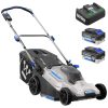 Potência Confiável e Duradoura: O kit inclui duas baterias USB de 4.0Ah, uma bateria de 2.0Ah e 2 carregadores. Vale ressaltar que o cortador de grama só alcança a melhor vida útil da bateria quando operado com duas baterias de 4.0Ah totalmente carregadas. O sistema de bateria inteligente garante operação resfriada, controle dinâmico de carga e tolerância de temperatura alta e baixa variando de 15°C a 45°C.